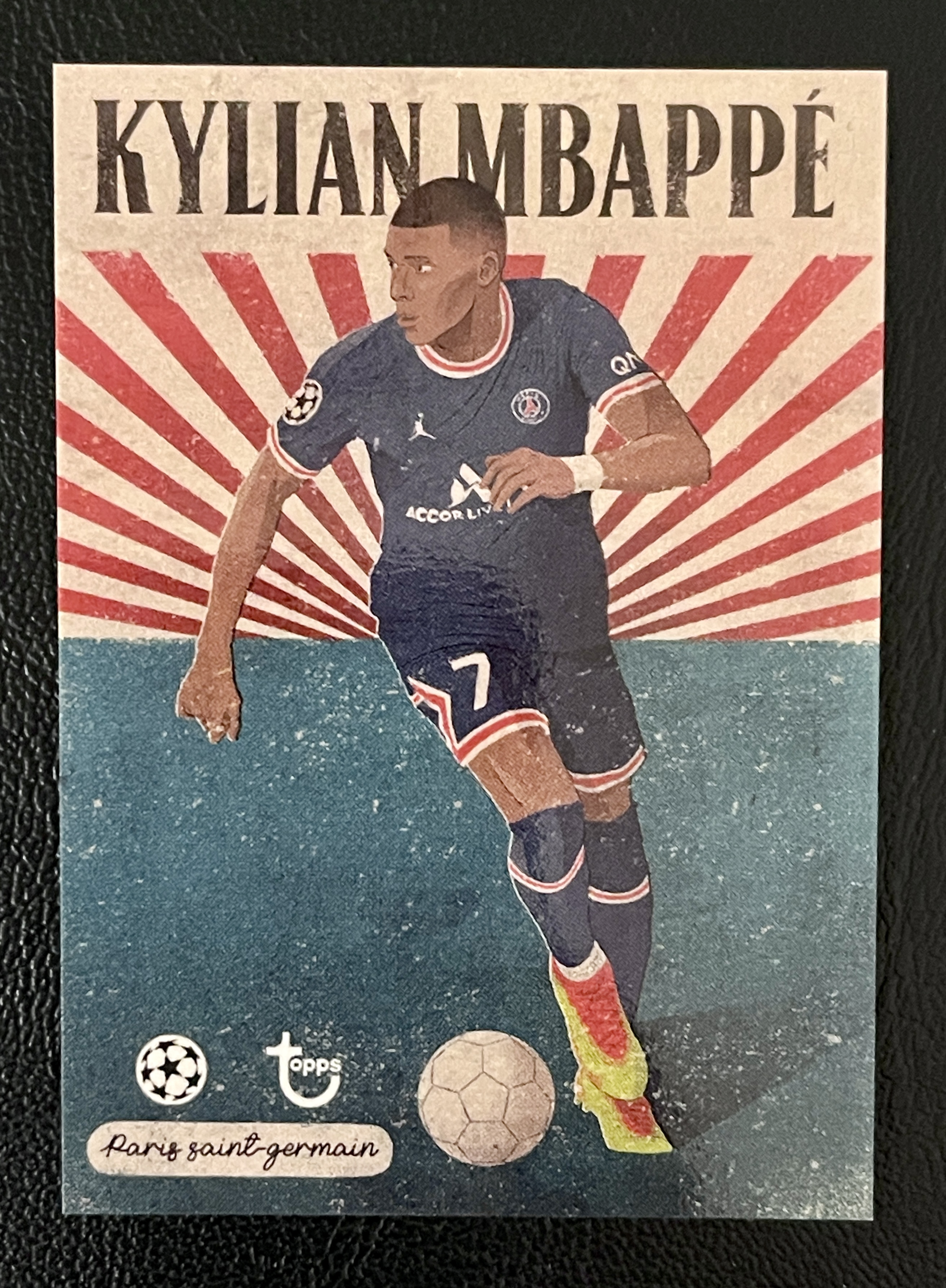 姆巴佩 姆总 2021 Topps 欧冠 漫画特卡 复古海报风 非常漂亮 法国头号球星 巴黎 皇马 本赛季状态火热 值得收藏!