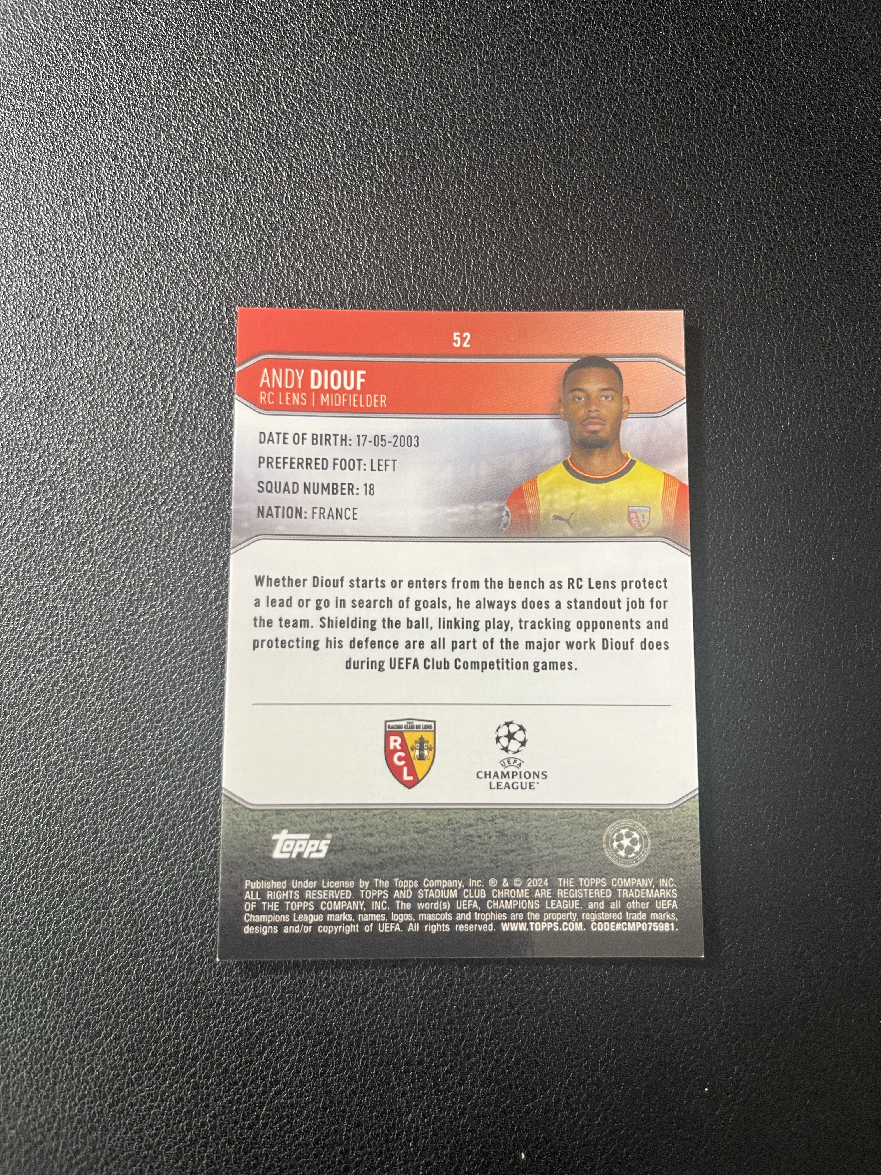 2024 Topps Chrome Andy Diouf RC 欧冠竞技场 会员盒 朗斯 国际米兰 安迪 迪乌夫 新秀rc 50编金折 变化版 16/50 实卡精美 投资收藏必备