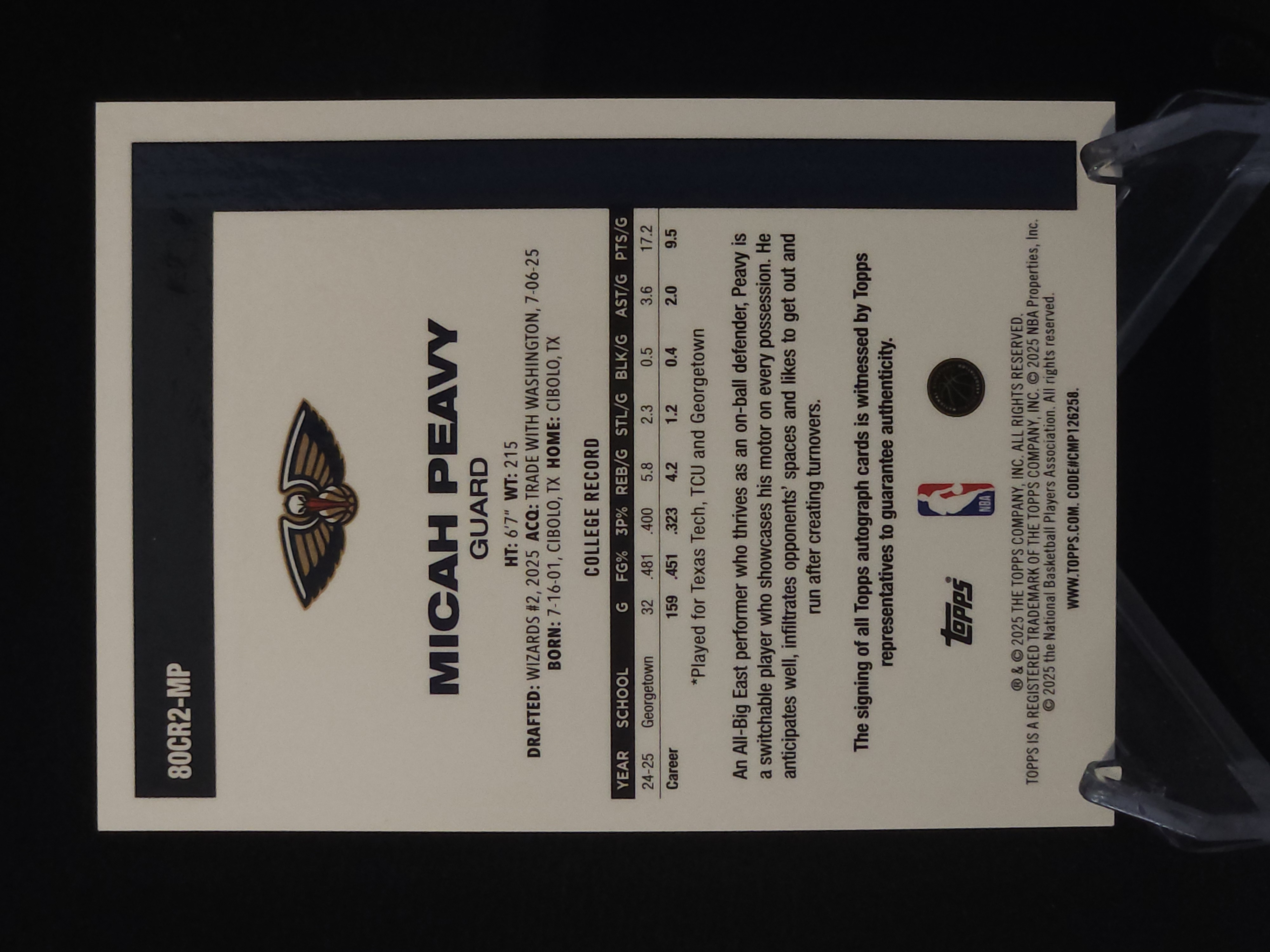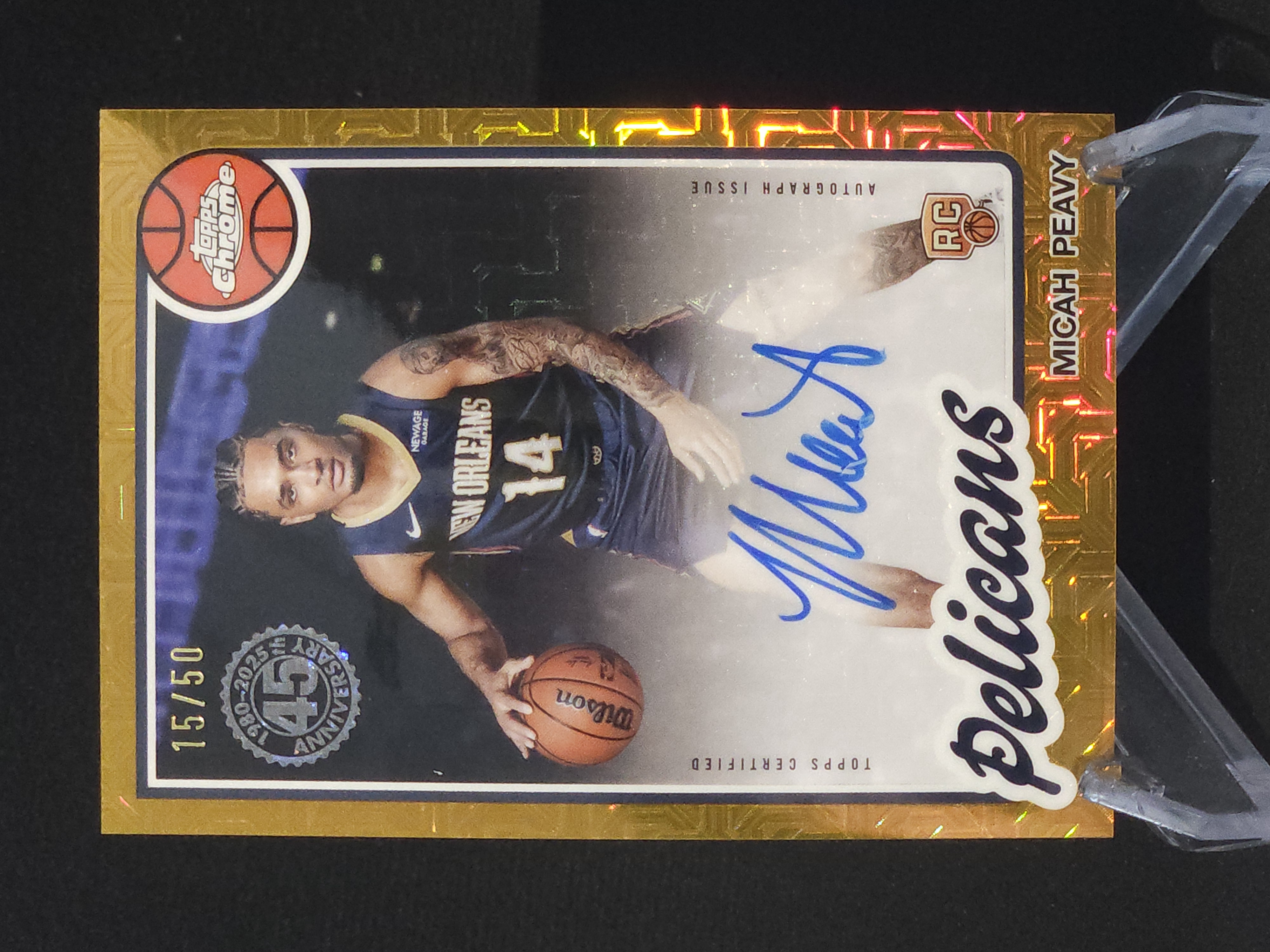 2025-26 Topps Basketball Micah Peavy RC 【流星代拍】迈卡 皮维 鹈鹕 新秀 45周年纪念Base 金Mojo折 签字 卡签 50编 卡品如图 帅比 A