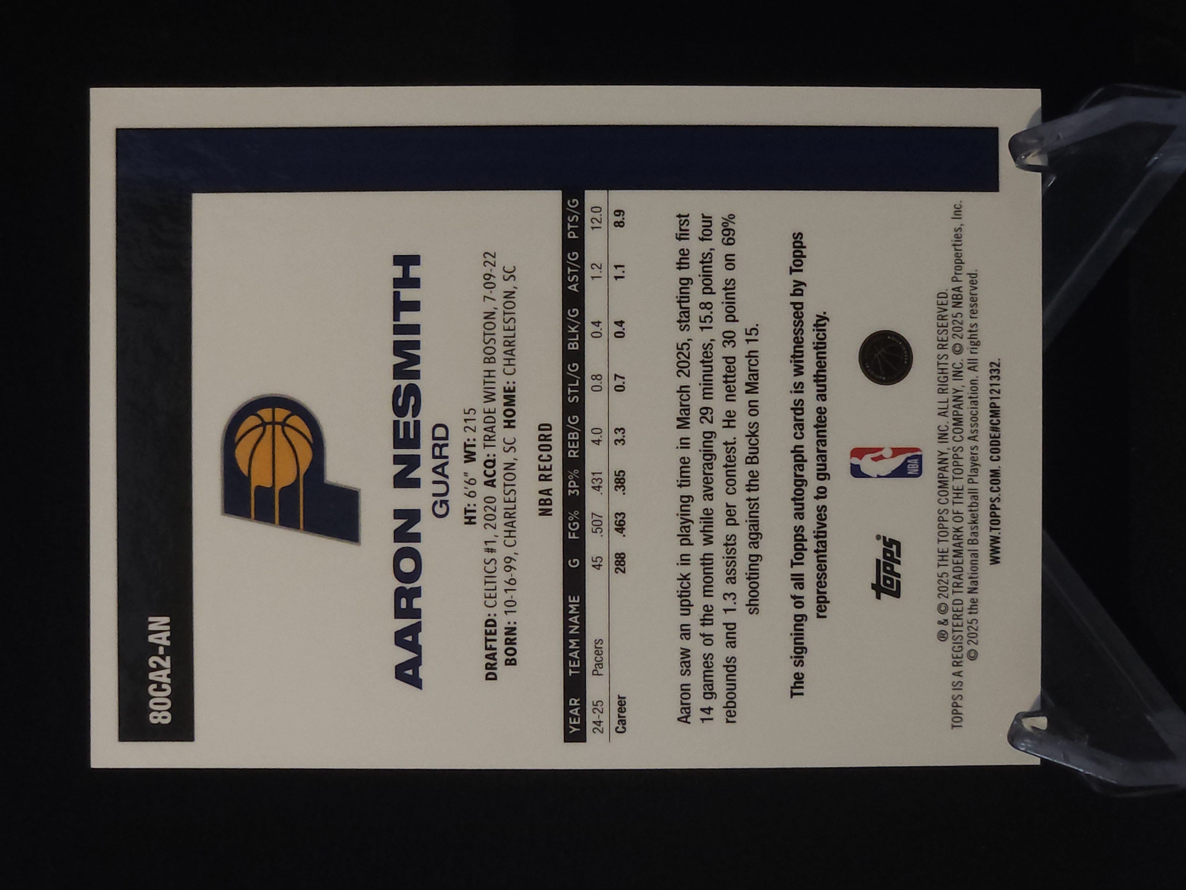 【流星代拍】2025-26 topps chrome 步行者 阿隆内史密斯 Aaron Nesmith 50编 金mojo折 45周年特卡签字 卡签 卡品如图 帅比 A