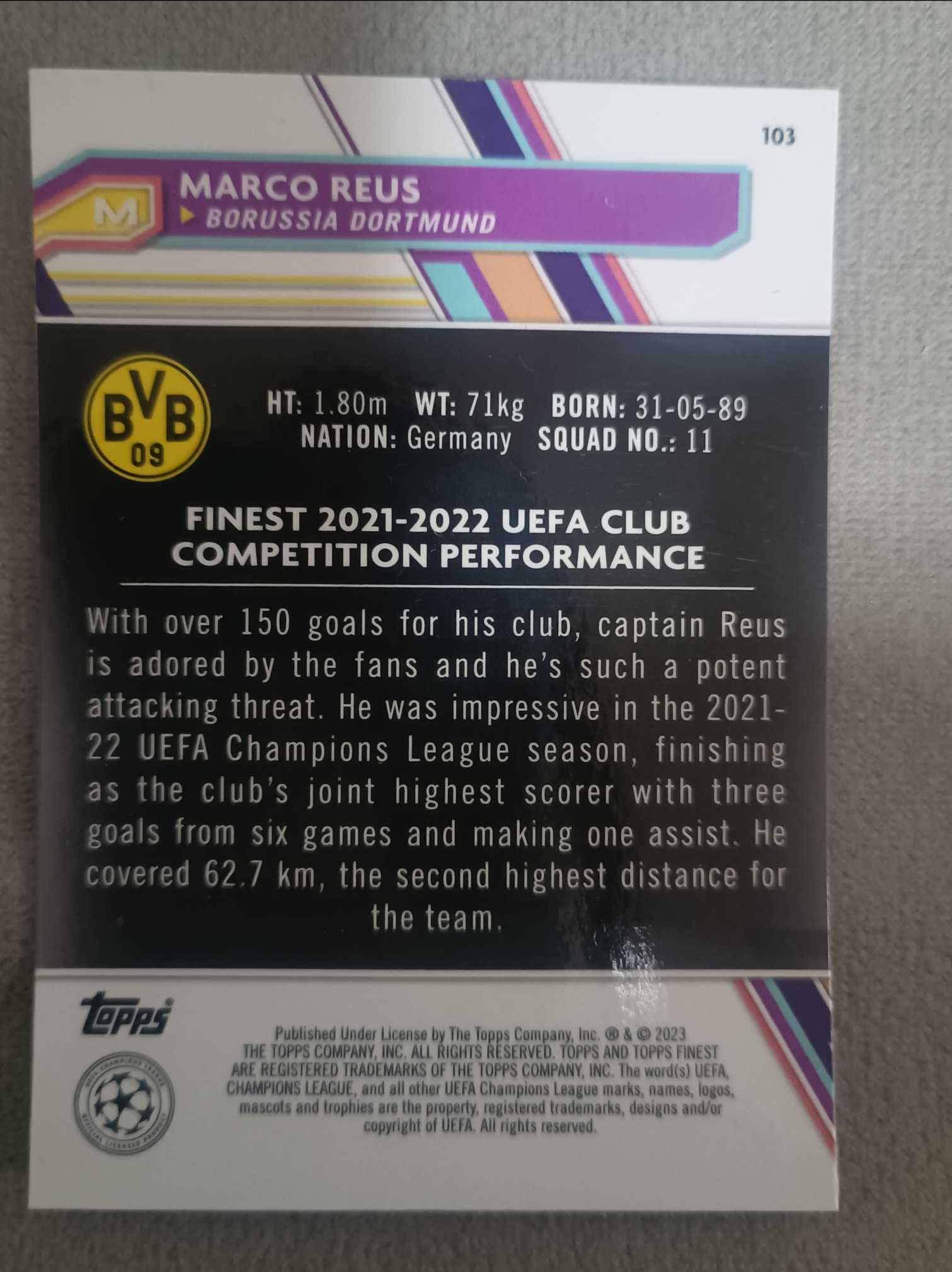 2023 Topps Finest Marco Reus 【接代拍】Finest chrome base 罗伊斯 德国🇩🇪 多特蒙德 小火箭 又帅又能打 队迷人迷 收藏凑套可入