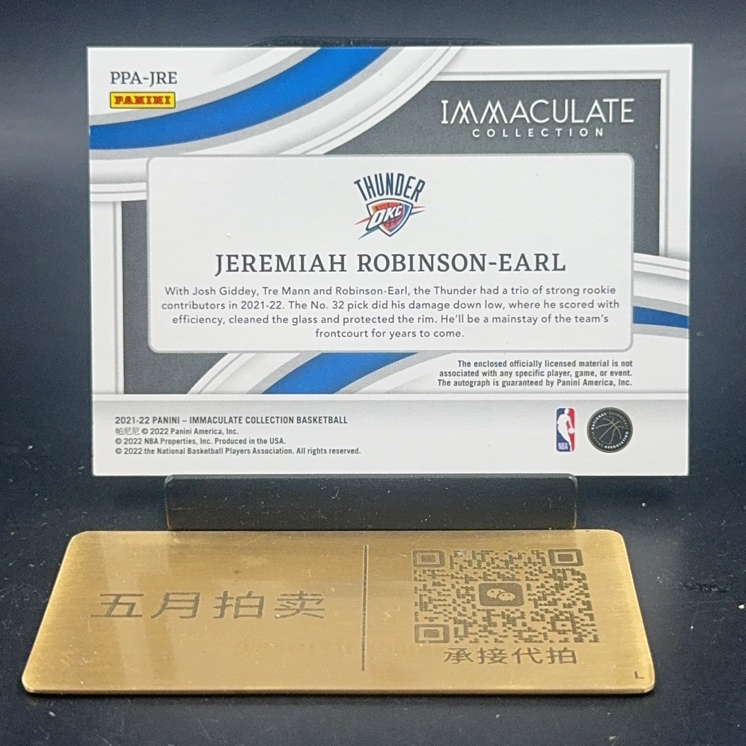 2021-22 Panini Immaculate Jeremiah Robinson-Earl RC 【五月拍卖】厄尔 新秀 1/10编首编 签字卡签 球衣RPA PPA 微瑕如图红顶帽3k49