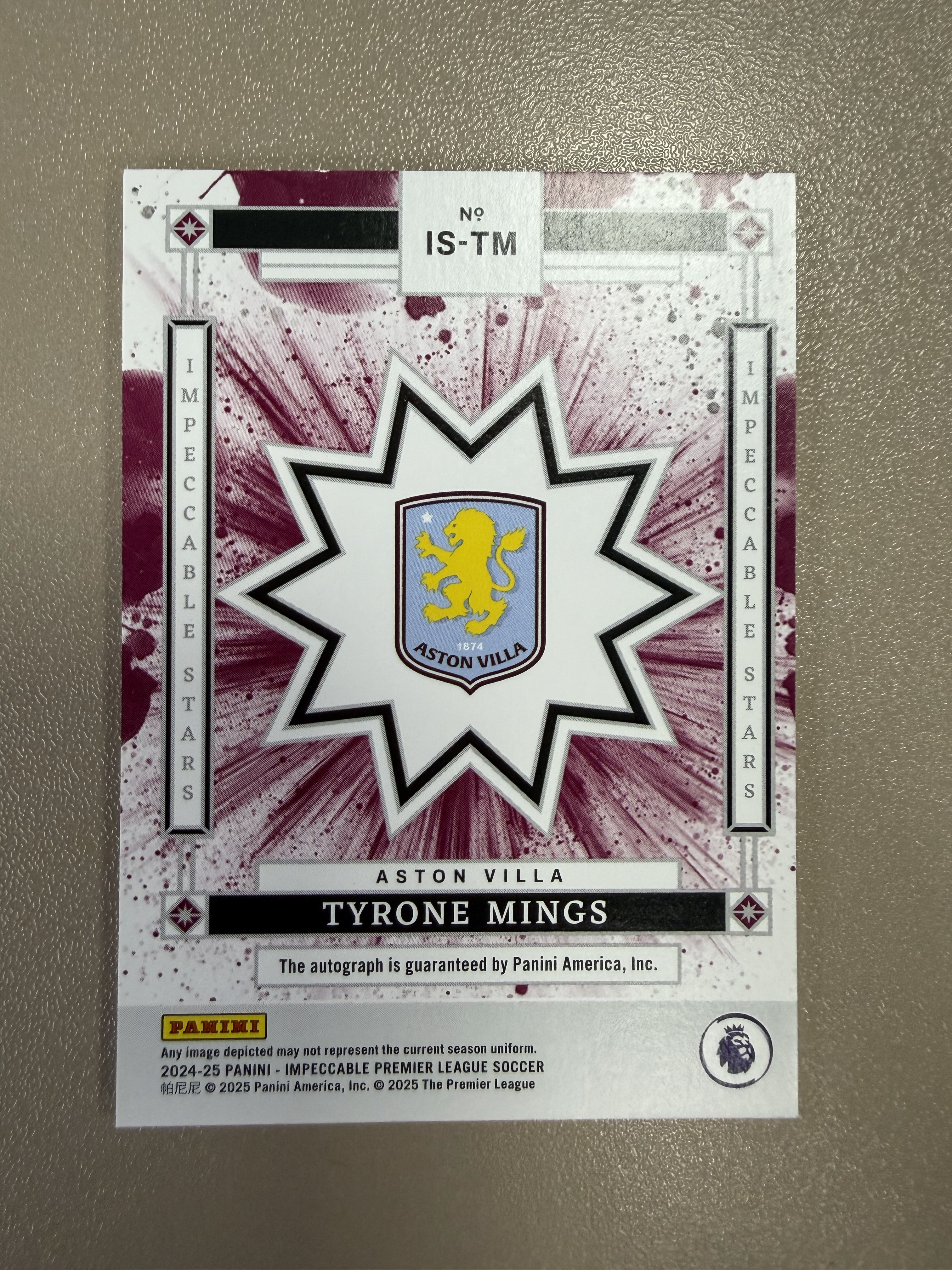 2024-25 Panini Impeccable Tyrone Mings 英超 小真金 泰隆 明斯 阿斯顿维拉 英格兰铁卫 星星签 68/99编