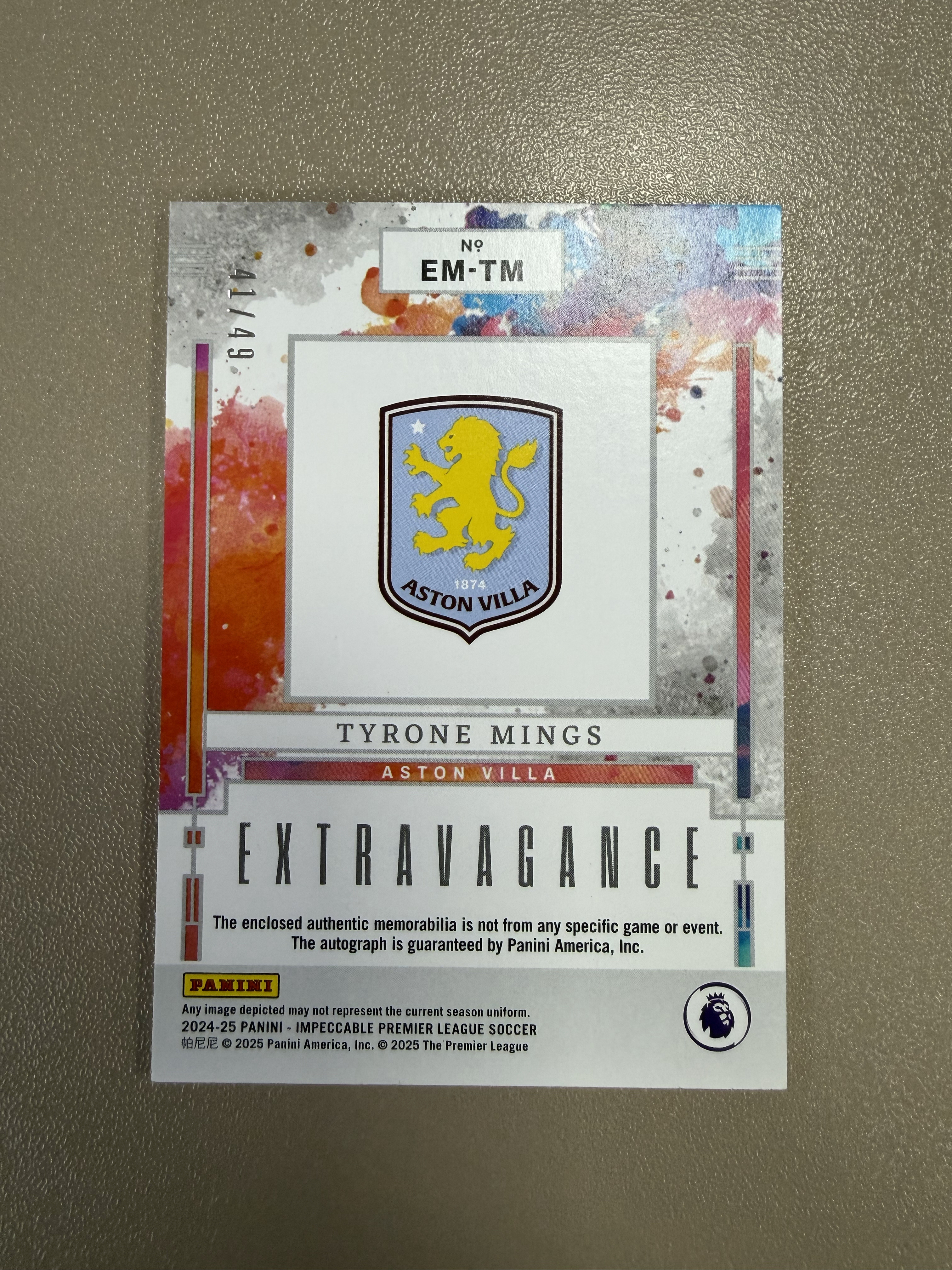2024-25 Panini Impeccable Tyrone Mings 英超 小真金 泰隆 明斯 阿斯顿维拉 英格兰铁卫 奢华球衣签 双色patch 41/49编