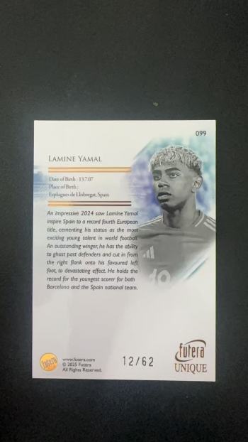 ![2025 Futera Futera Unique Lamine Yamal [年轻人球星卡]接代拍 温斯 福特拉 巴萨 巴塞罗那 亚马尔 12/62编 不保卡品 拍前看描述](https://images.cardhobby.com/4d4f5041eb537a7565325636a25379691765016954722.jpg)