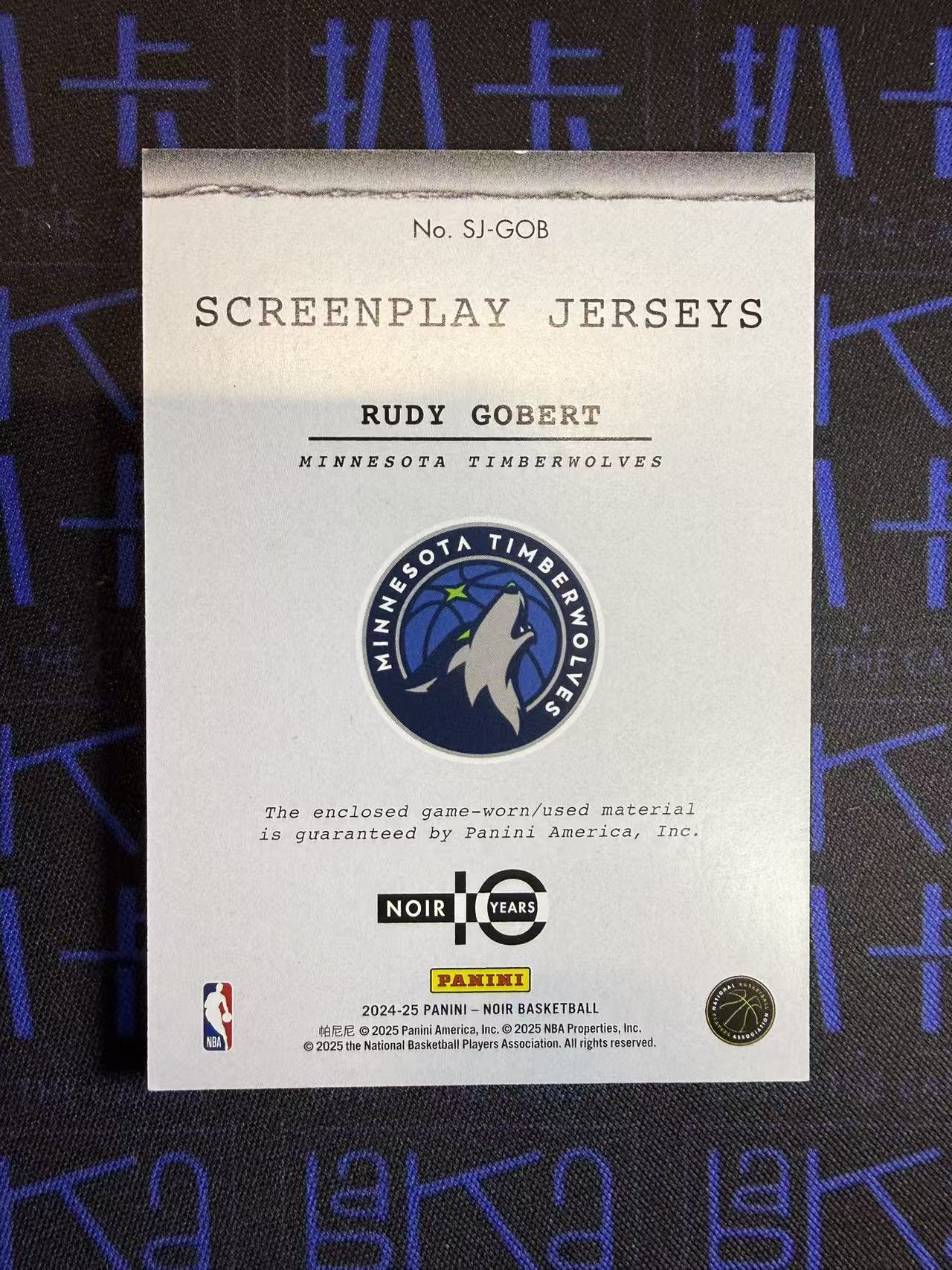 【扒卡拍卖】【拍前请看描述】2024-25 Panini Noir Rudy Gobert 诺尔 鲁迪 戈贝尔 法棍 森林狼 球衣 物料 实物 /99编 投资收藏必备 黄金1209BK02