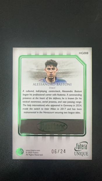 ![2025 Futera Futera Unique Alessandro Bastoni [年轻人球星卡]接代拍 温斯 福特拉 巴斯托尼 意大利 6/24编 不保卡品 拍前看描述](https://images.cardhobby.com/dda3d04023a9e9e79eb90e86aea495081765018116342.jpg)