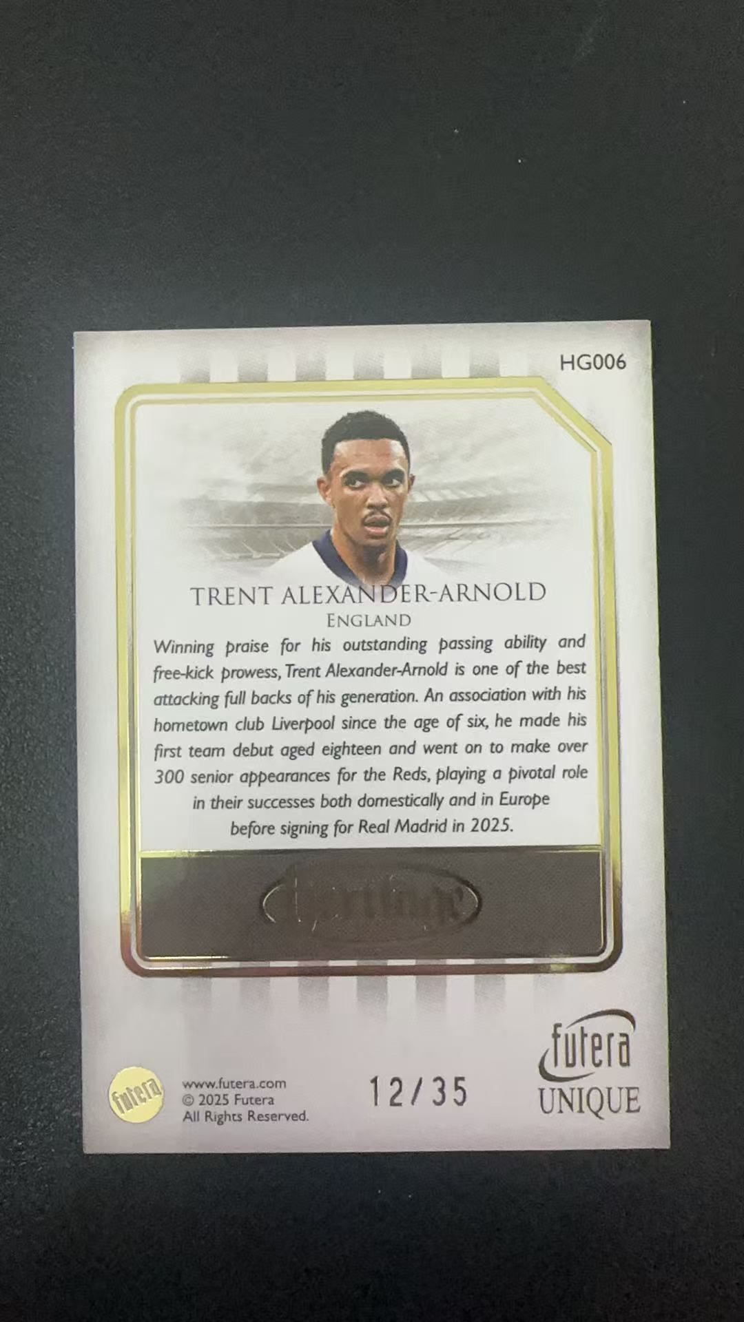 ![2025 Futera Futera Unique Trent Alexander Arnold [年轻人球星卡]接代拍 温斯 福特拉 阿诺德 英格兰 12/35编 不保卡品 拍前看描述](https://images.cardhobby.com/df0799e2083dbaef28eb3b63ba4a25761765018180708.jpg)
