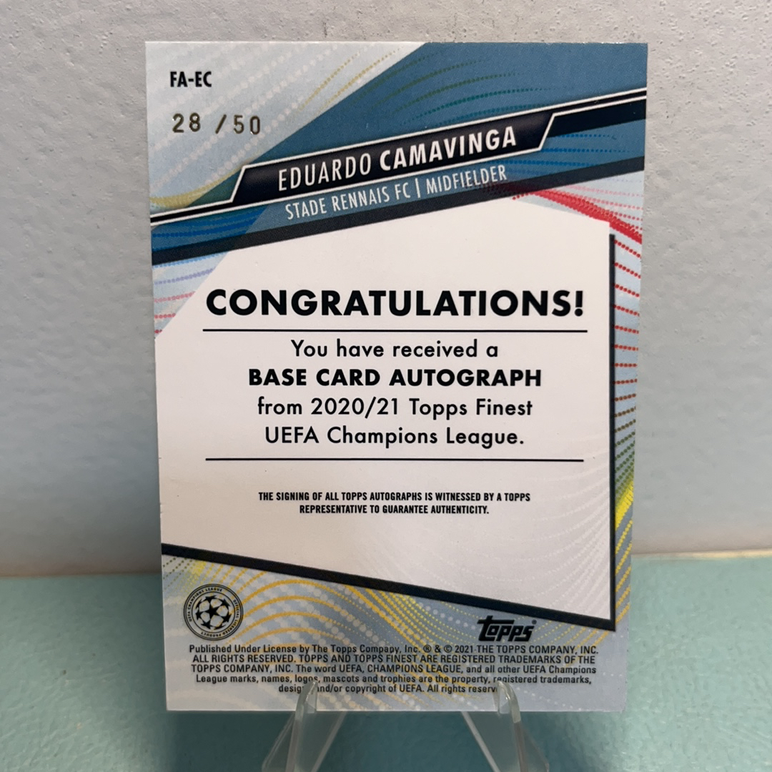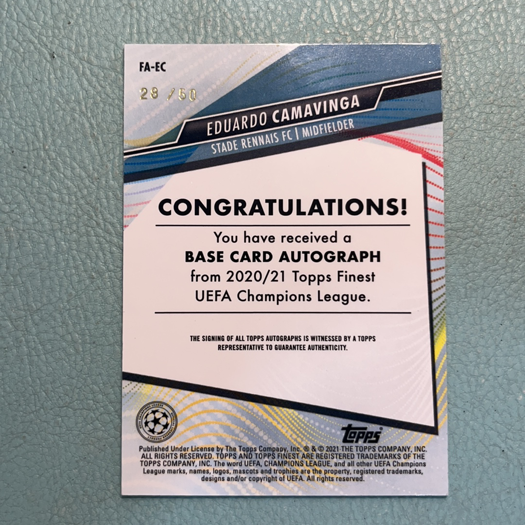 2020-21 Topps Finest Eduardo Camavinga RC 欧冠 雷恩 卡马文加 28/50编 金折 折射 签字 签名 新秀RC 皇马 法国 卡品如图jy20