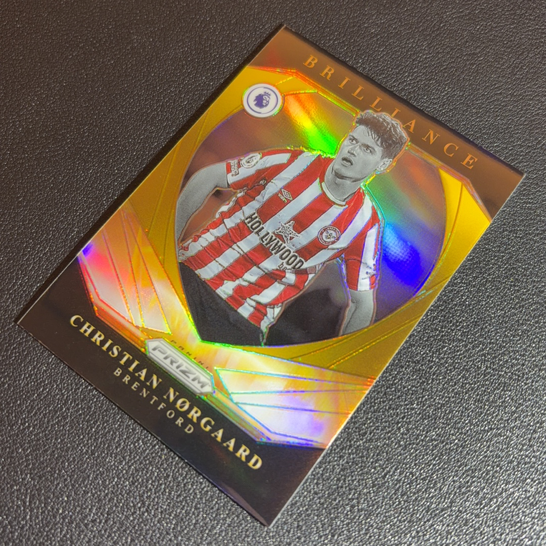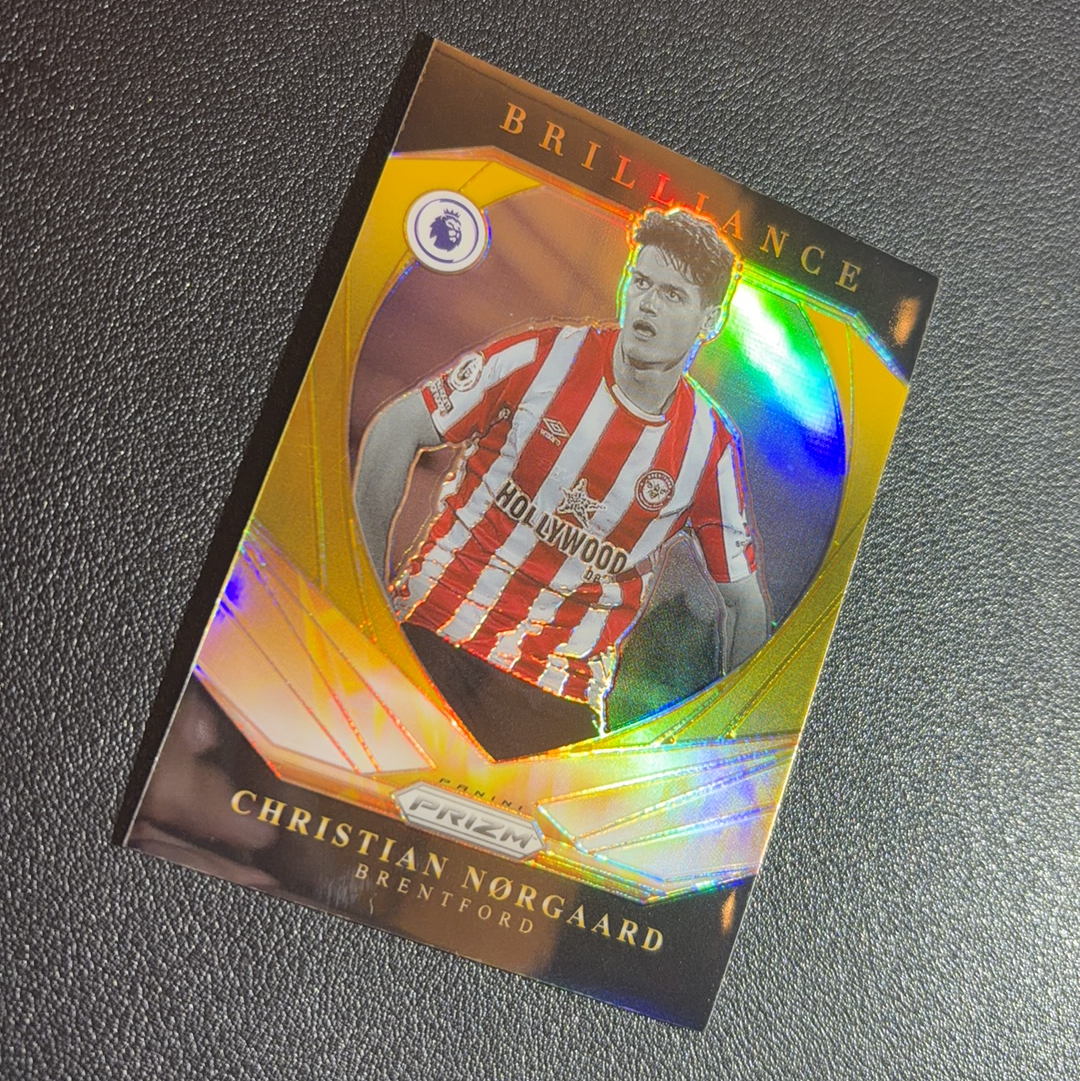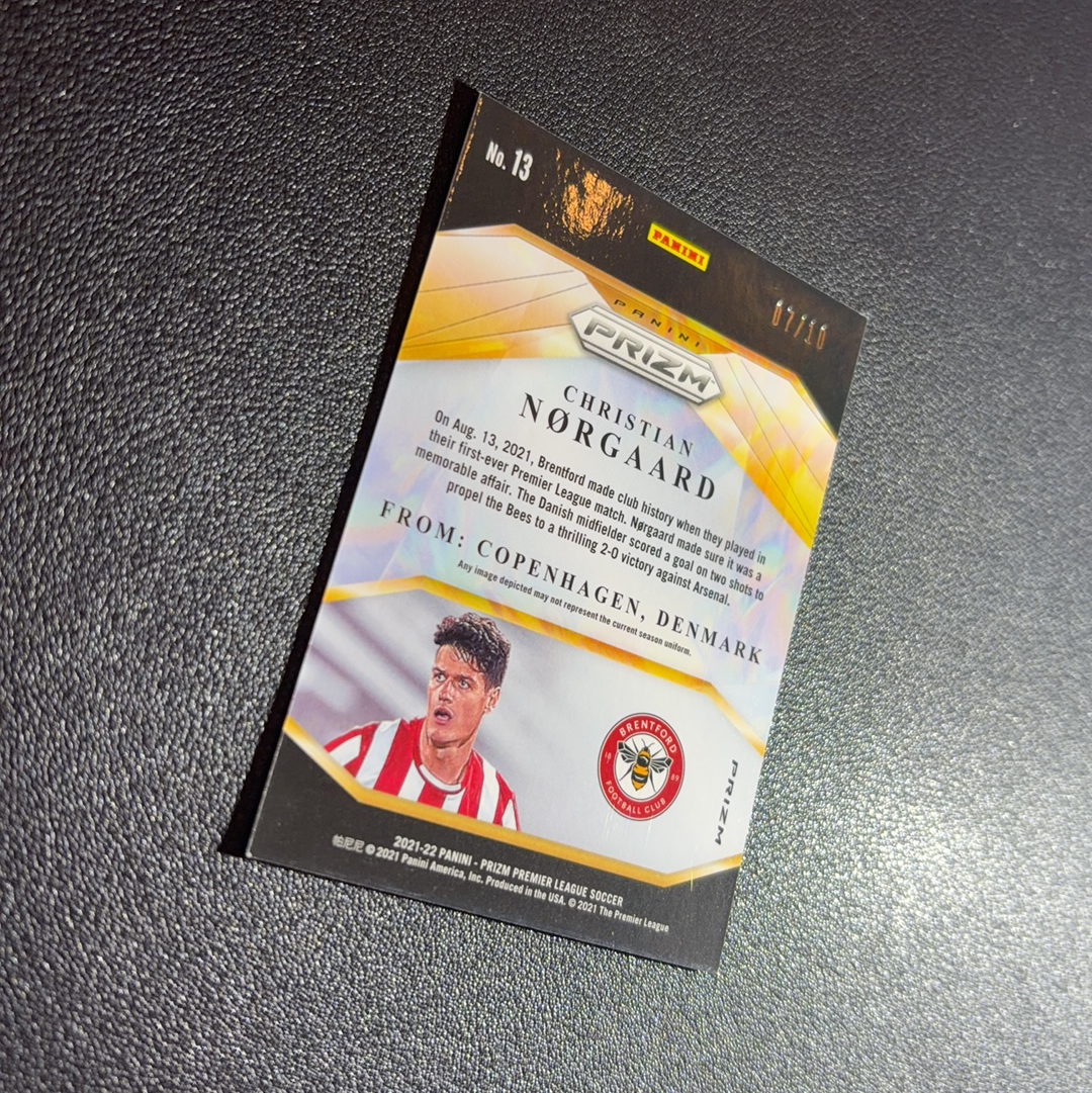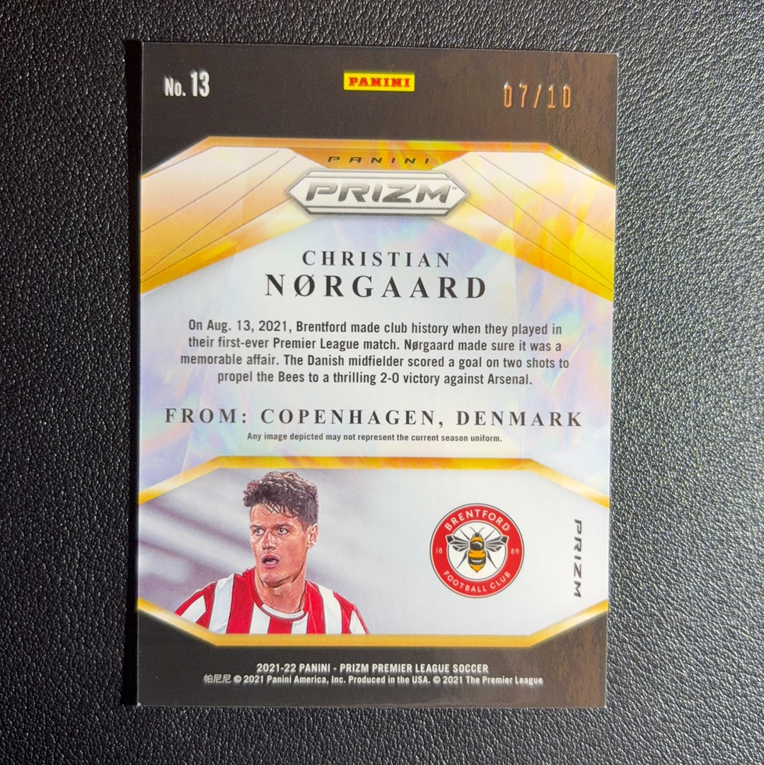 2021-22 Panini Prizm Christian Norgaard RC 英超PZ 布伦特福德 阿森纳 诺尔加德 新秀 诺尔高 07/10编 超低编 金折射 特卡 边角轻印看图S00082
