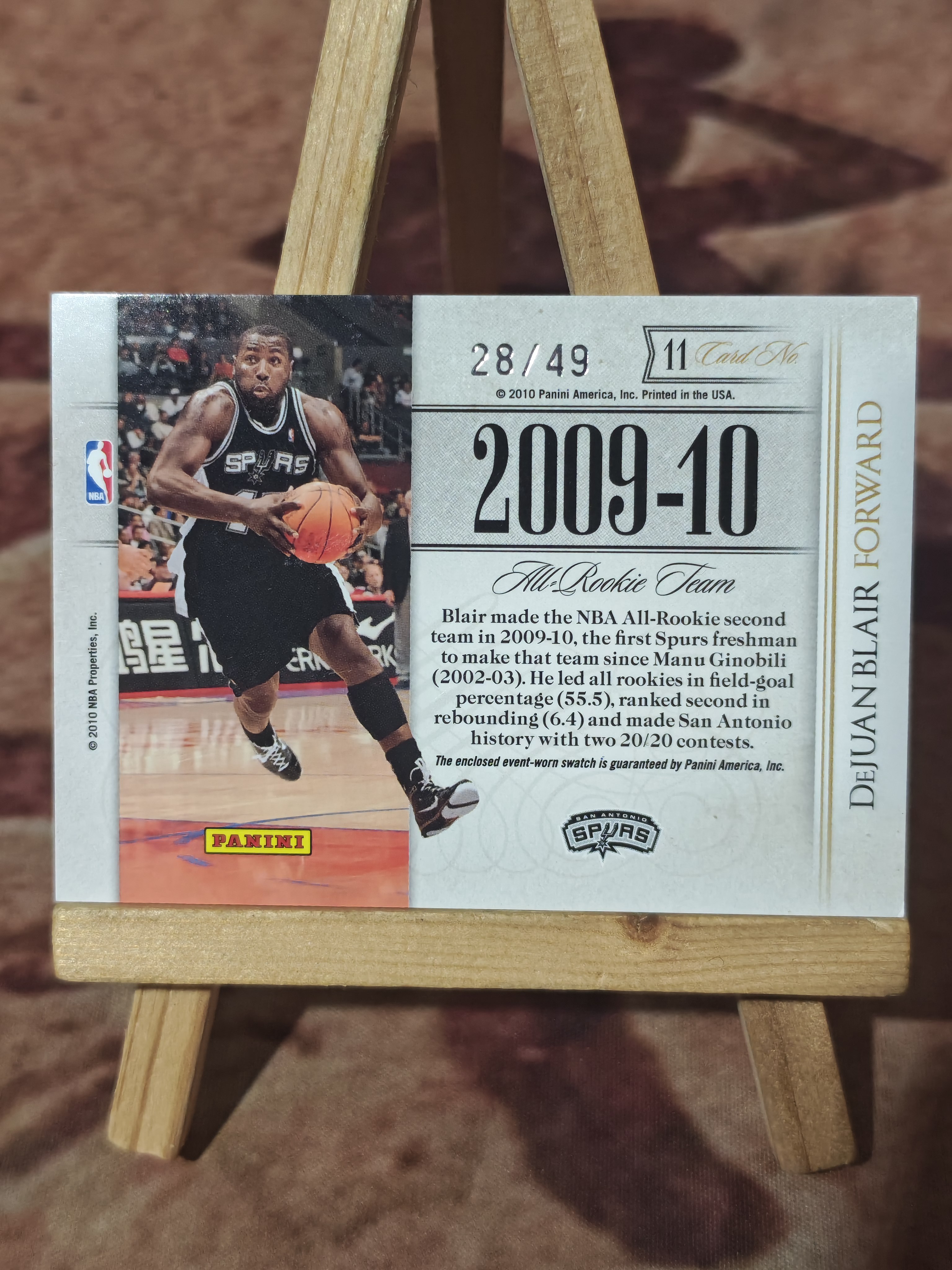 2009-10 Panini National Treasures DeJuan Blair RC 【科科代卖 】马刺新秀 德胡安布莱尔 国宝 28/49编 亲穿球衣物料 字母镂空 卡品如图
