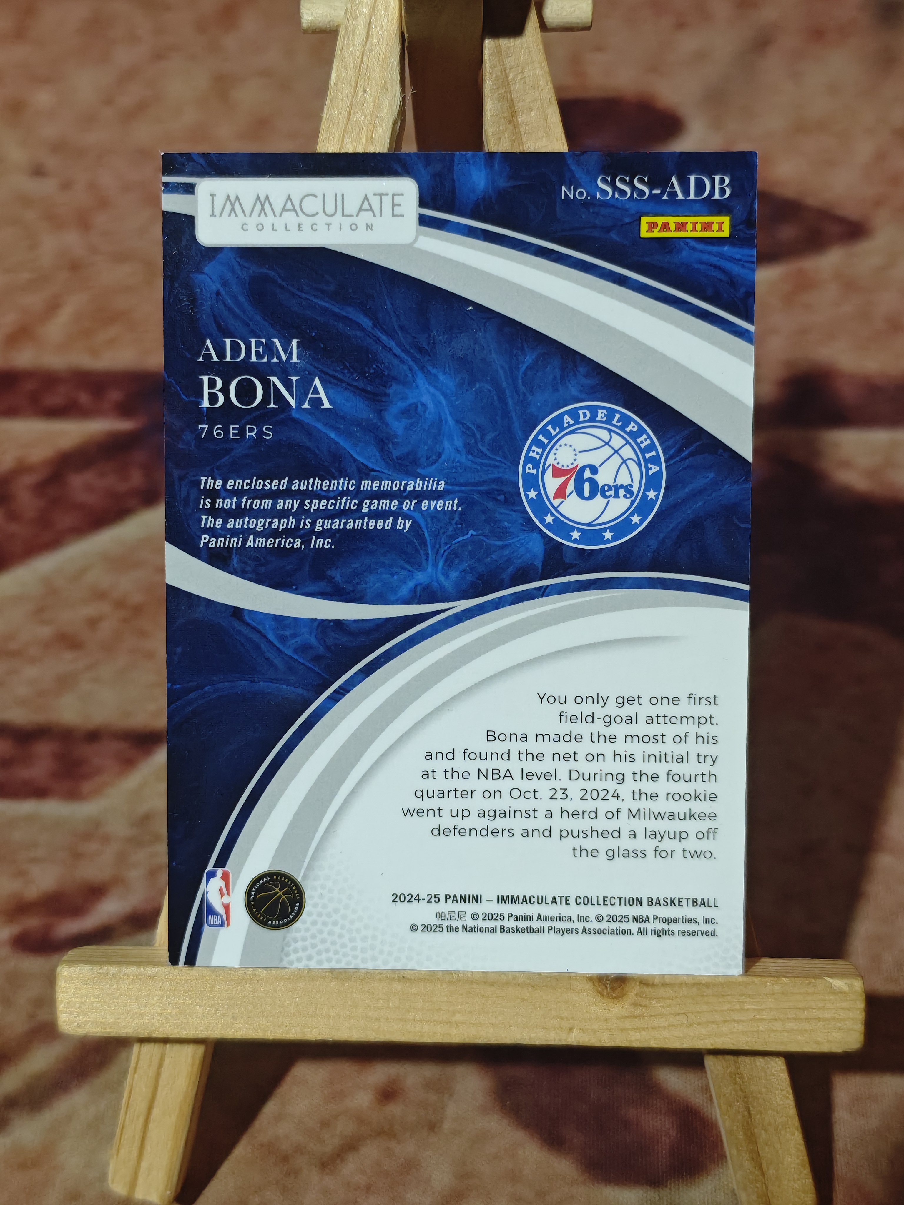 2024-25 Panini Immaculate Adem Bona 【科科代卖 吗丁啉】76人新秀 阿德姆 博纳 签字 卡签 鞋签 patch sneaker 04/49遍 卡品如图