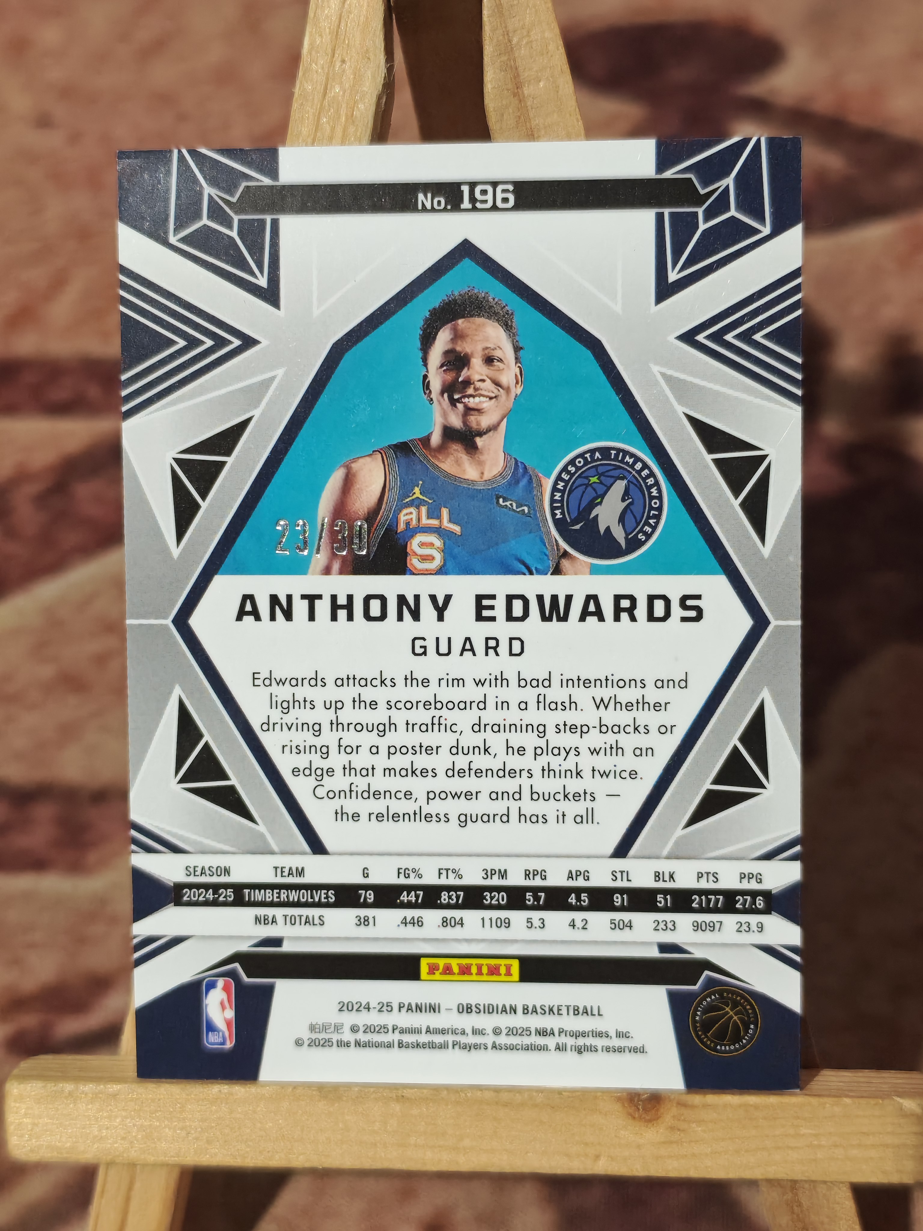 2024-25 Panini Obsidian Anthony Edwards 【科科代卖 吗丁啉】黑曜石 森林狼 全明星 安东尼 爱德华兹 华子 23/30编 蓝折射 base 卡品如图