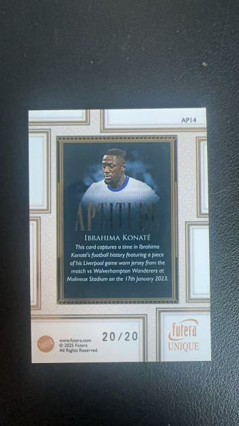 ![2025 Futera Futera Unique Ibrahima Konaté [年轻人球星卡]接代拍 温斯 福特拉 法国 科纳特 单窗 物料 球衣 落场 20/20编 不保卡品 拍前看描述](https://images.cardhobby.com/f3cb5ece78813a053bdb43630ef452a21765096096840.jpg)
