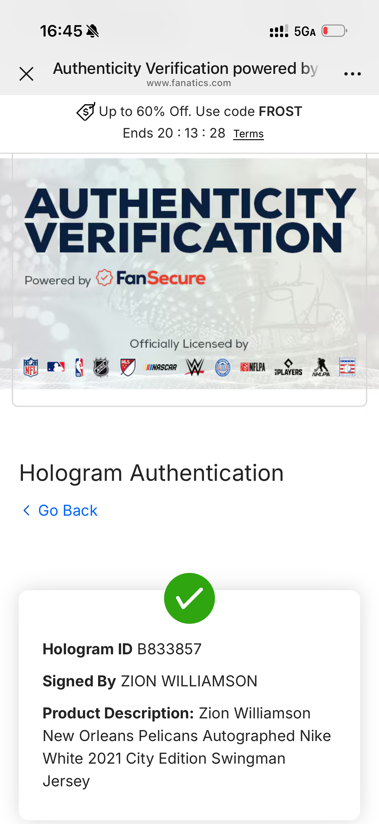 【叫板拍卖】鹈鹕队 胖虎 锡安 威廉姆斯 状元   签名球衣 亲签球衣 fanatics官方发行  已经裱装 收藏必备  顺丰到付 gn