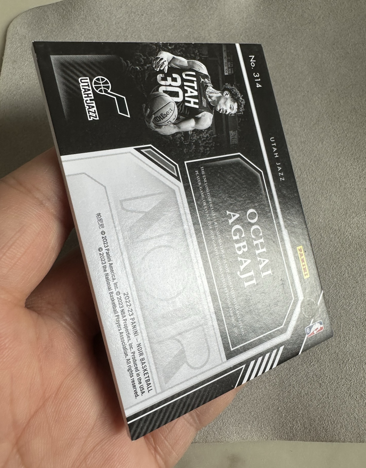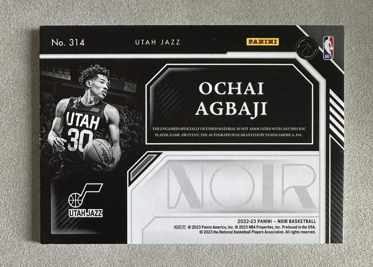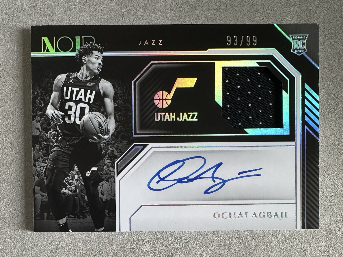 2022-23 Panini Noir Ochai Agbaji RC 爵士队 新秀 阿巴基 阿巴吉 诺尔 RJA 新秀签字 99编 新秀卡签 球衣物料切割 瑕疵如图 卡量稀少 凑套必备
