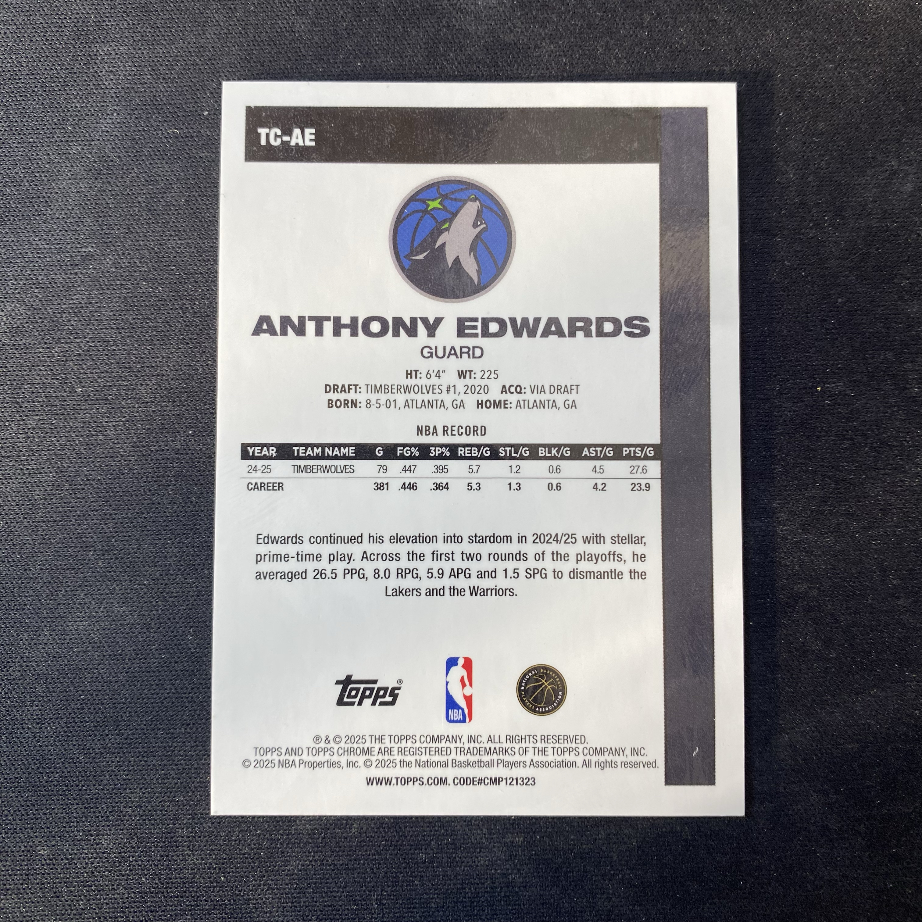 2025 Topps Chrome Anthony Edwards 【星集卡代卖】cyb1209 篮球 安东尼 爱德华兹 华子 25/50编 45周年 复古特卡 金mojo折 折射