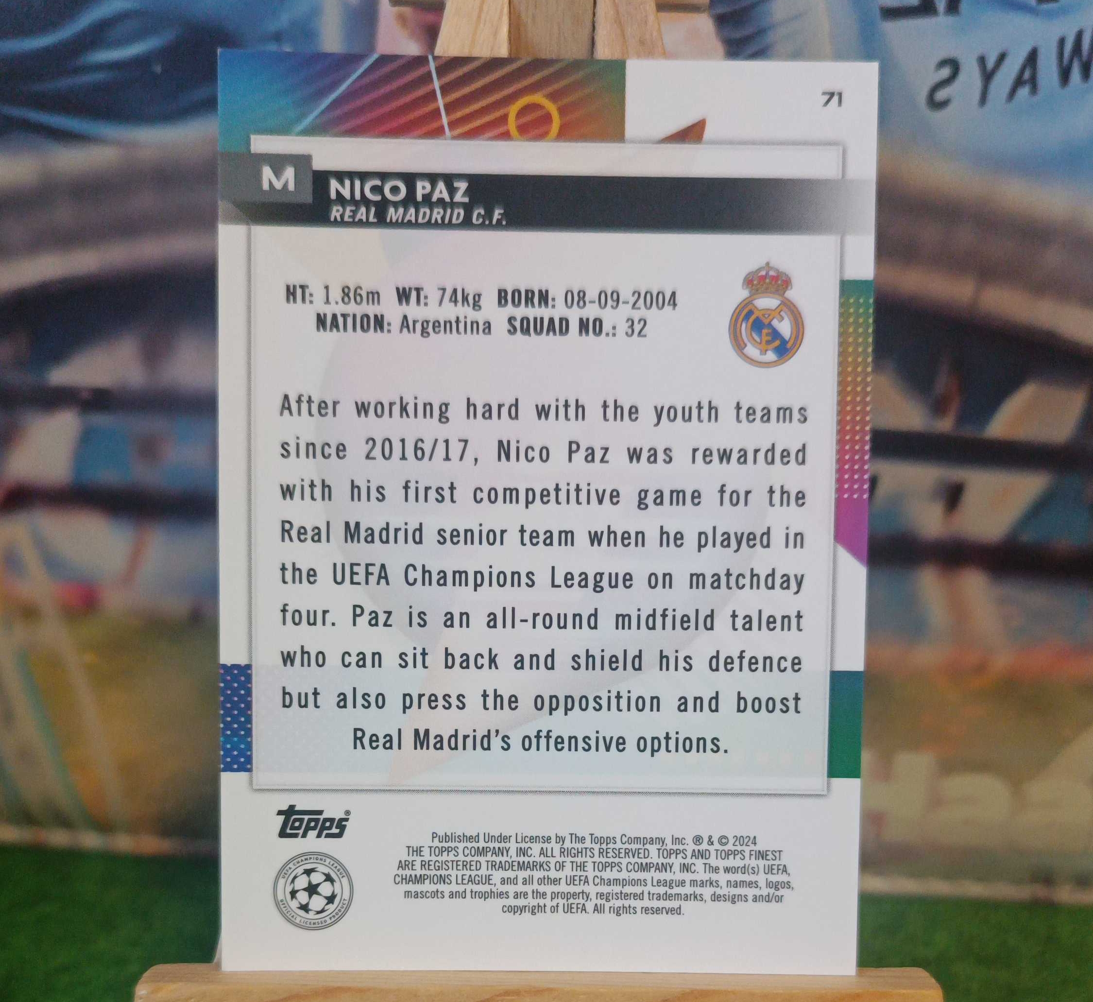 2024 Topps Finest Nico Paz RC 欧冠 皇家马德里 新秀RC 尼科 帕斯 帕兹 199编 阿根廷🇦🇷 助攻梅西破门 科莫 中场核心 状态火热 豪门猎物 卡品如图