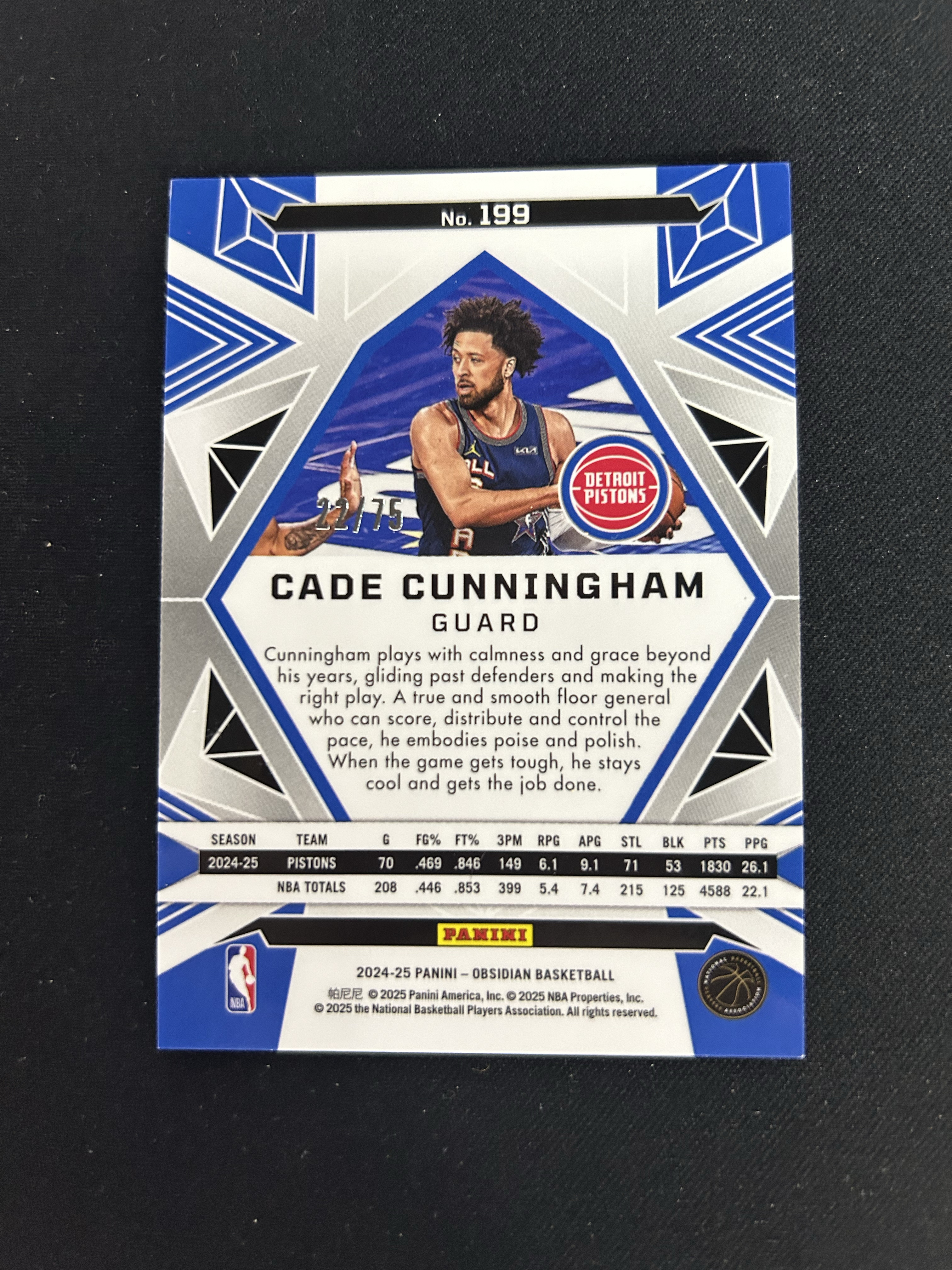 2024-25 Panini Obsidian Cade Cunningham 活塞 CC 坎宁安 黑曜石 /75编 折射