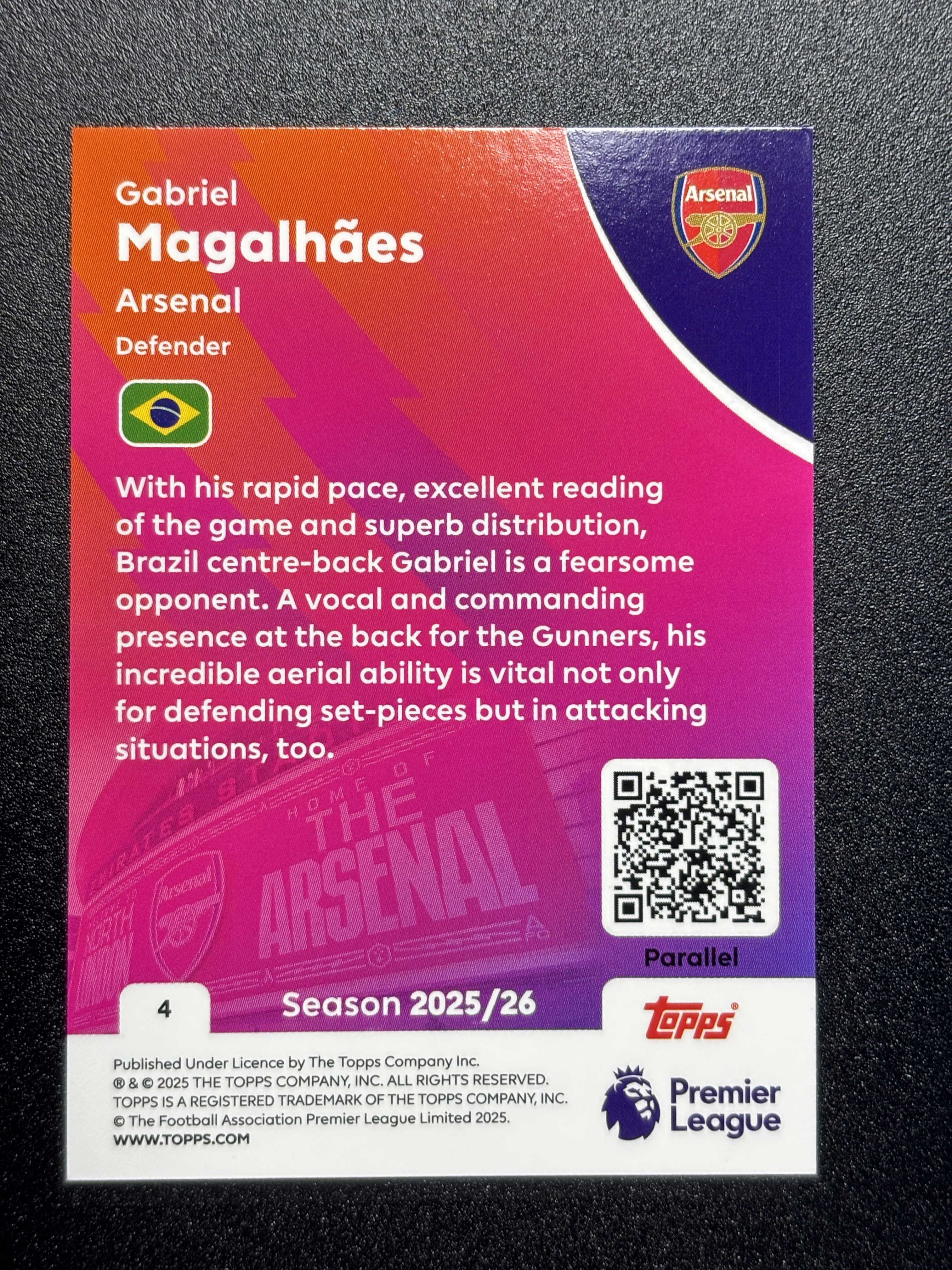 2025 Topps Premier League GABRIEL MAGAIHAES 【棍】英超 加布里埃尔 阿森纳 199编 紫碎钻折 折射 卡品如图 不保卡品