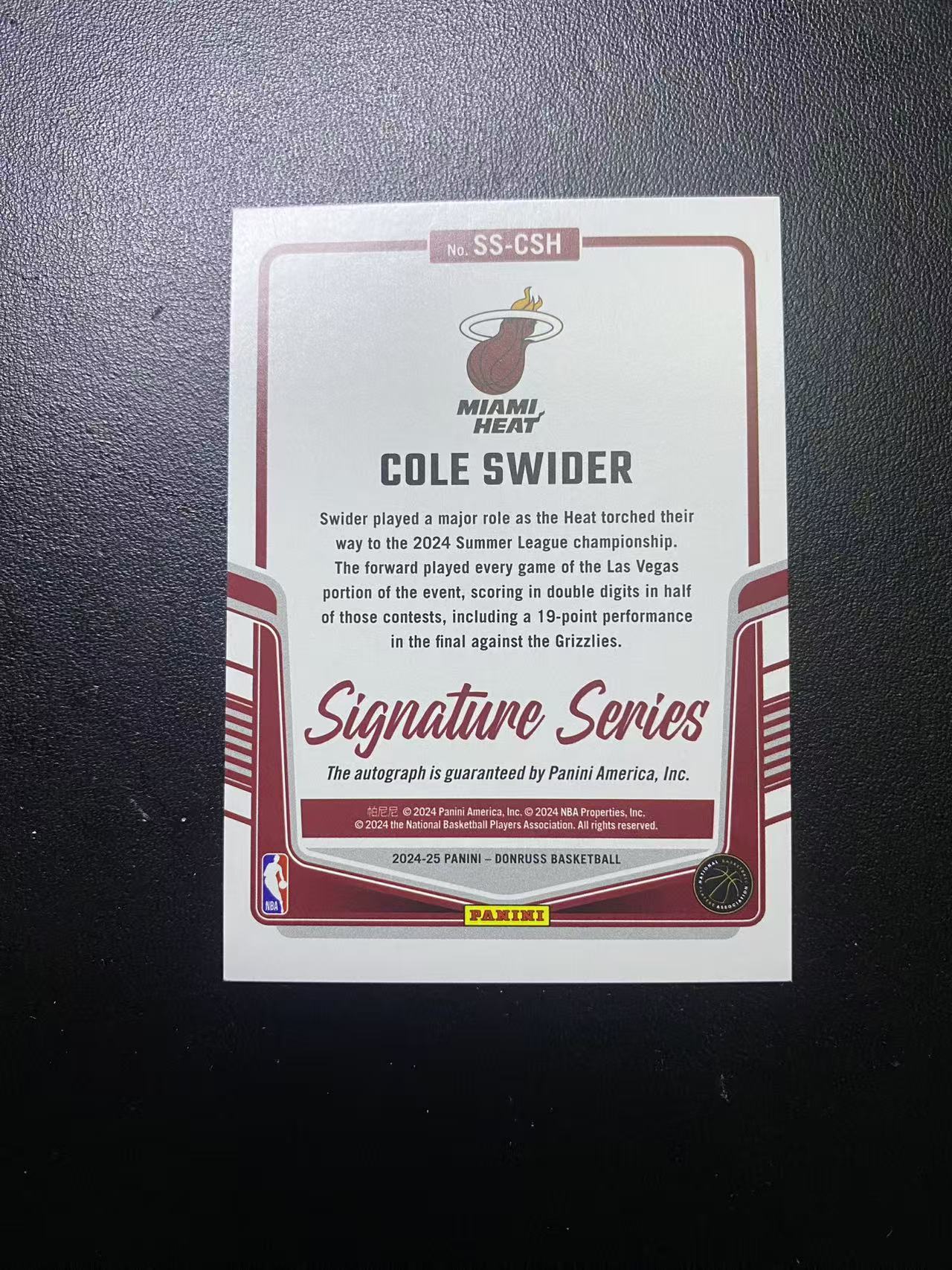 2024-25 Panini Donruss Cole Swider 热火 科尔 斯威德 杜蕾斯 银折 折射 签字 卡品如图 值得收藏 dm