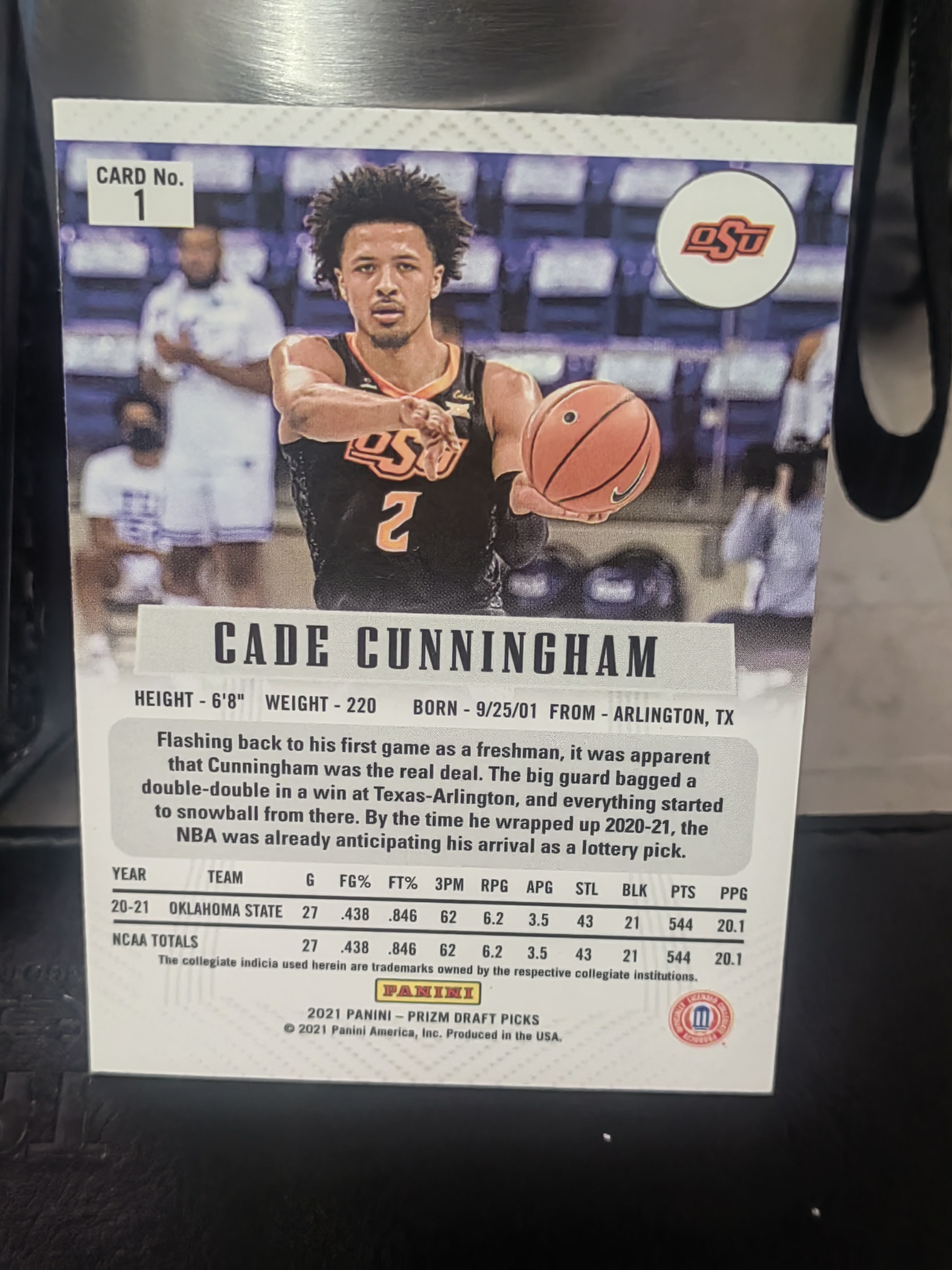 2021 Panini Prizm Draft Picks Cade Cunningham RC PZ 大学 新秀 凯德 康宁汉姆 坎宁安 CC 活塞 第四张 篮 白边白角 不保卡品 卡品如图