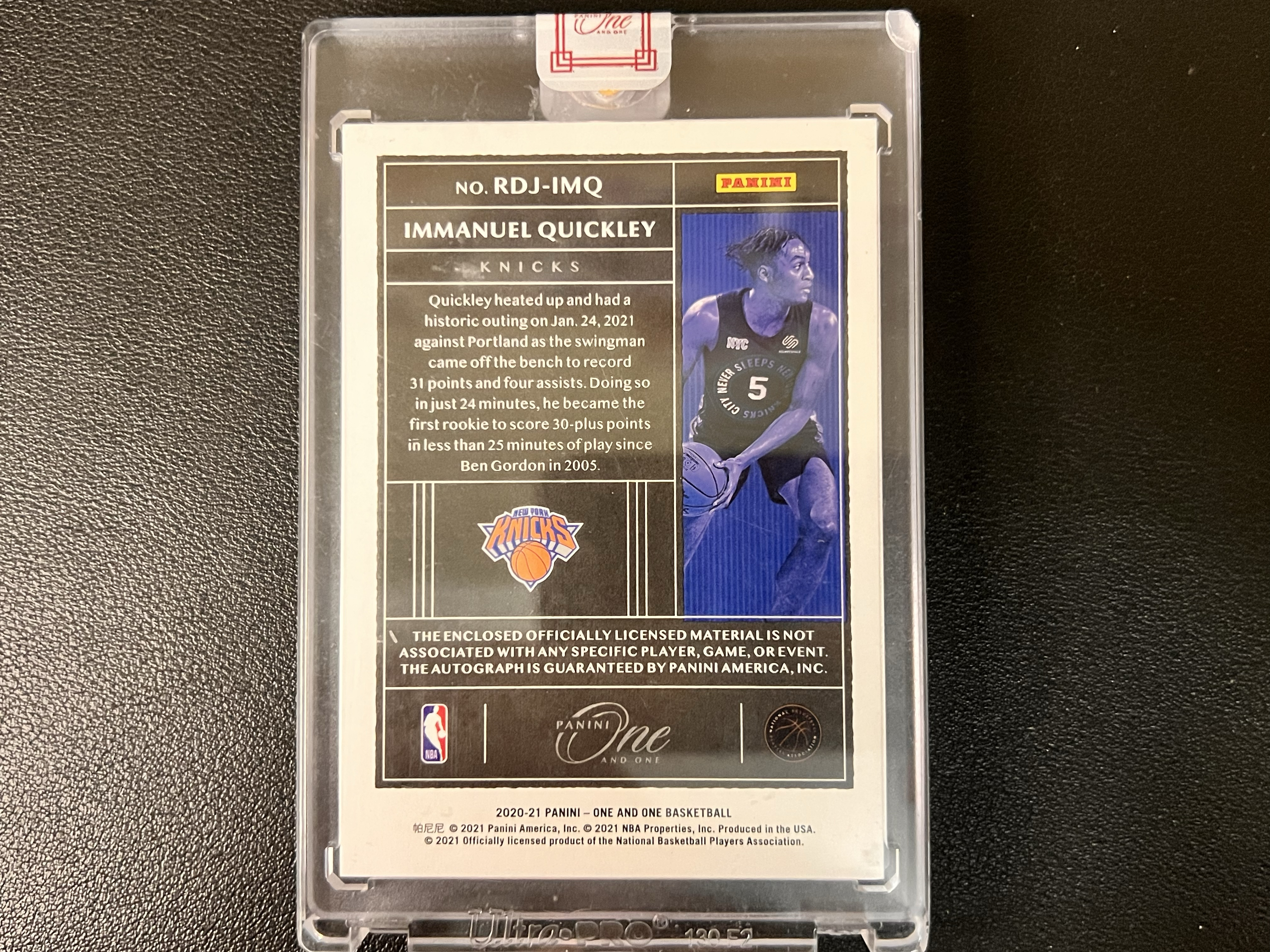 2020-21 Panini One and One Immanuel Quickley RC 伊曼纽尔 奎克利 35编 新秀 球衣暴力切割 卡签签字 RPA one 原封砖 砖瑕如图【孩