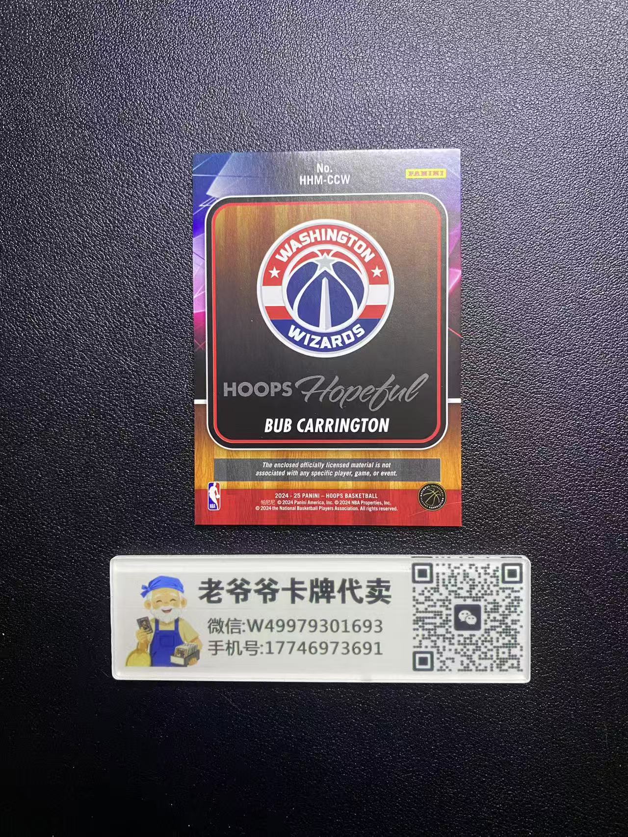 2024-25 Panini Hoops Bub Carrington RC 奇才 新秀年 卡林顿 卡灵顿 球衣 物料 切割 卡品如图 值得收藏 LR
