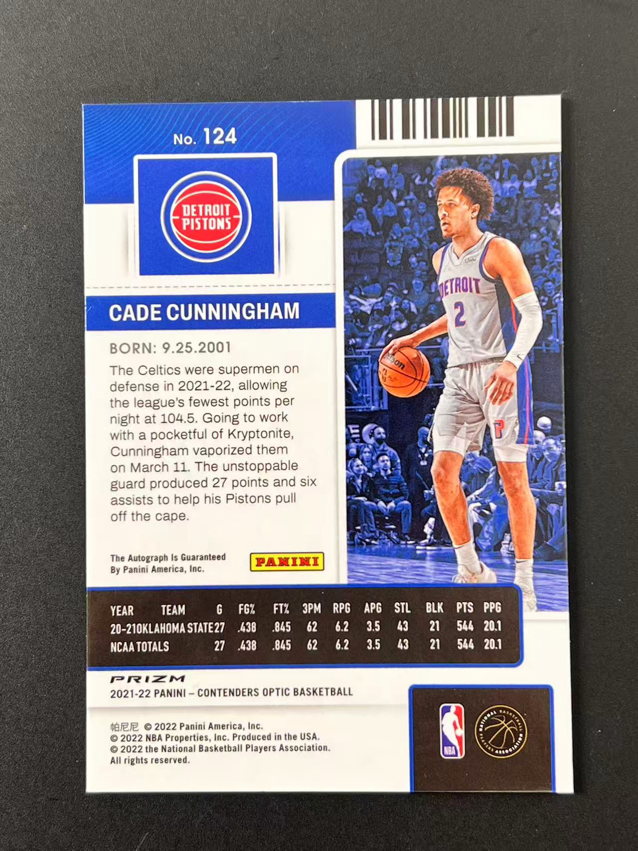 2021-22 Panini Contenders Optic Cade Cunningham RC【卡老鼠代卖】 球票OP 活塞 新秀RC 凯德 坎宁安 康宁汉姆 CC 卡签签字 银折 暴富哥 寄付