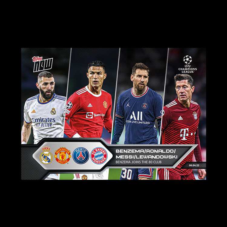 2022 Topps Now Messi&Benzema&Ronaldo&Lewandowski 欧冠 梅西&C罗&本泽马&莱万 四大射手同框 80俱乐部(彬伯)【JS卡牌潮玩】(随机发货,卡品通行