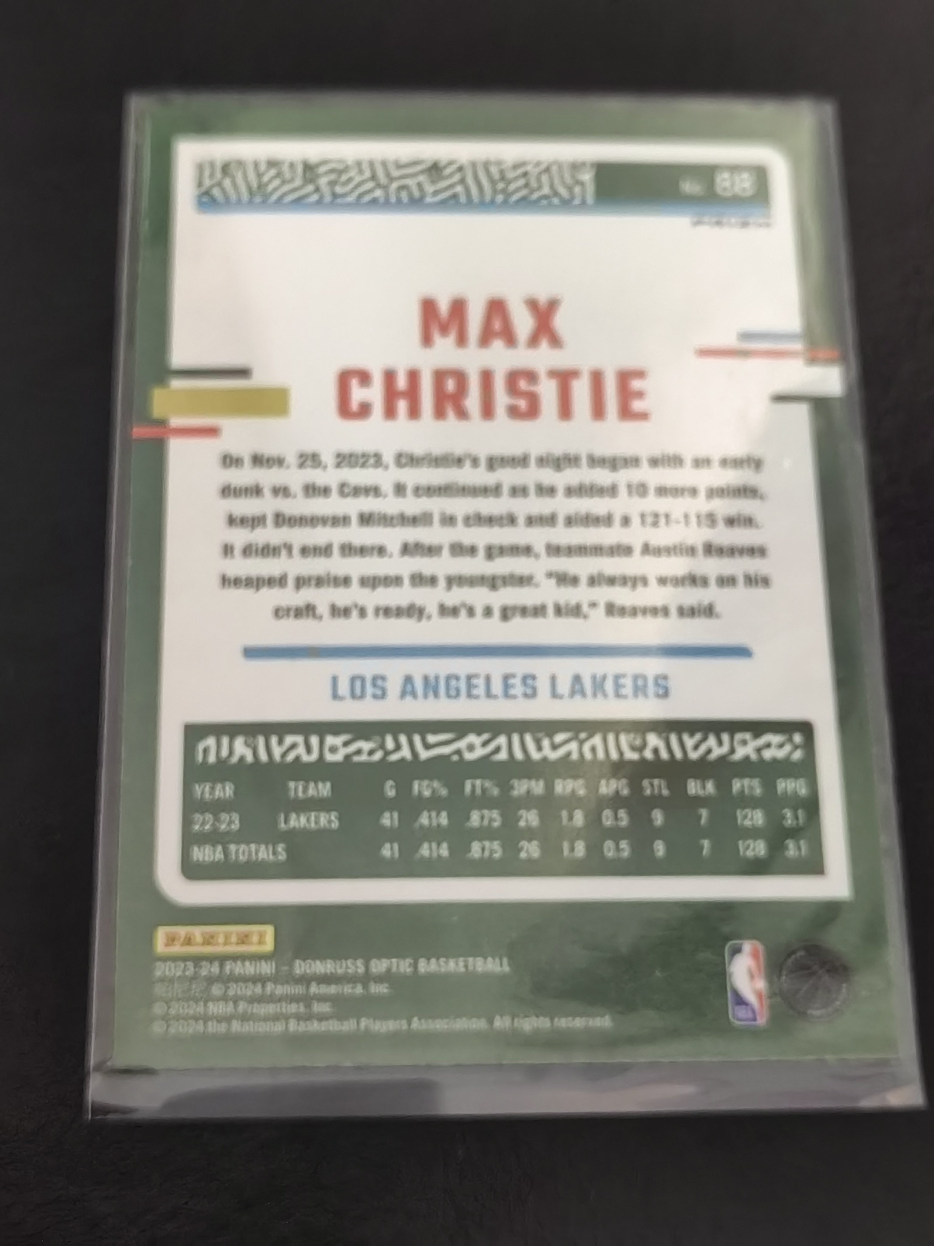2023-24 Panini Donruss Optic​​ Max Christie OP 红圈圈折 马克斯·克里斯蒂 湖人独行侠 篮 白边白角 不保卡品 卡品如图