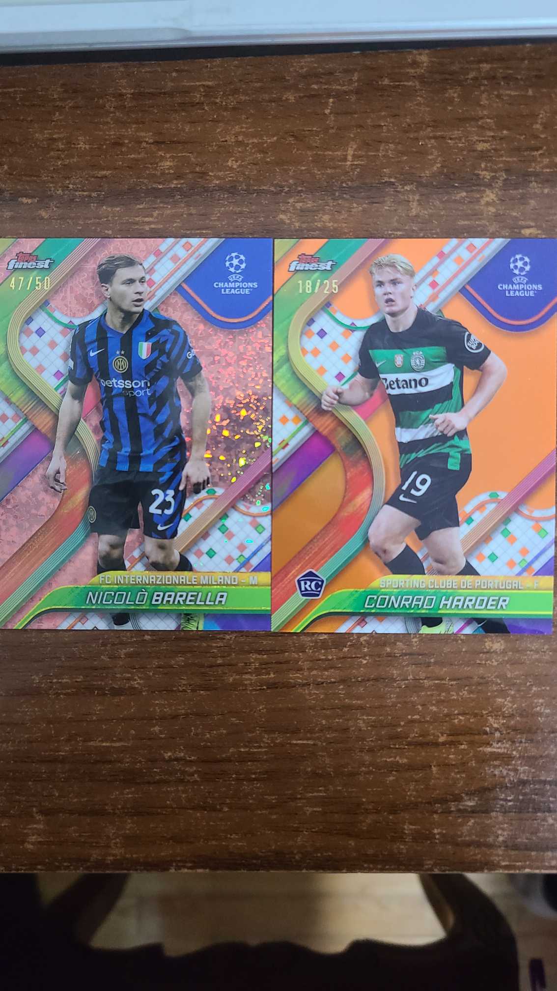 2024-25 Topps Finest 欧冠 欧战 国米 巴雷拉 47/50编 葡萄牙体育 哈德尔 新秀 rc 18/25编 两张打包