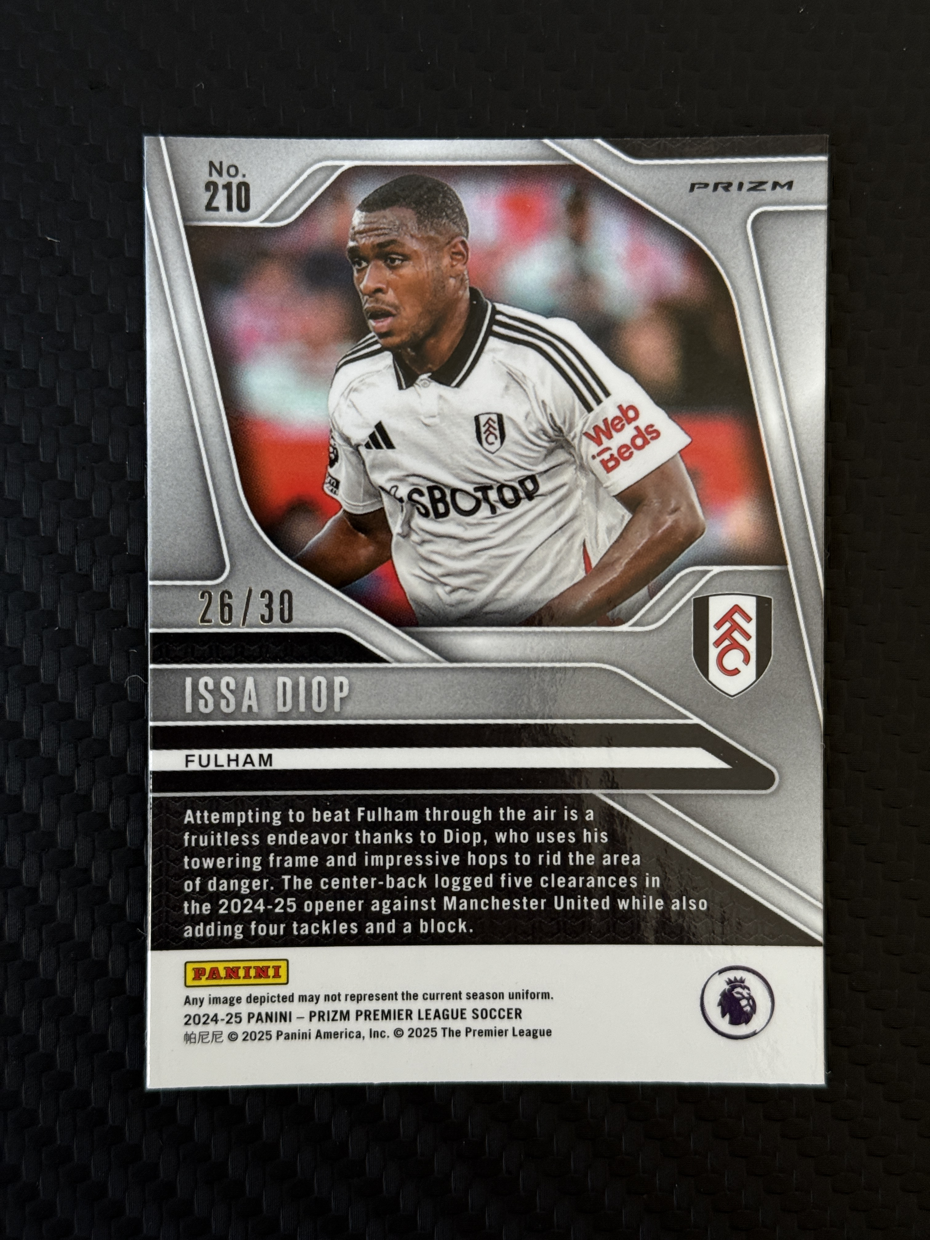 2024-25 Panini Prizm Issa Diop 【包来拍卖】英超PZ Choice 富勒姆 26/30编 迪奥普 红圈圈折 红折 卡品如图 叉叉