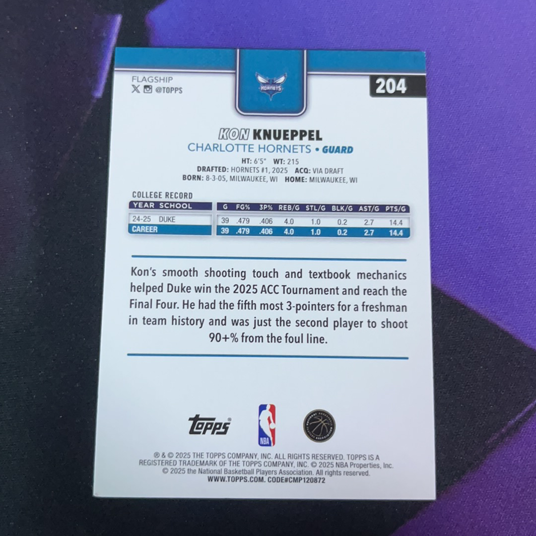 2025 Topps Flagship Kon Knueppel RC 最佳新秀 康 克努佩尔 黄蜂 新秀 正base 啦-接上拍