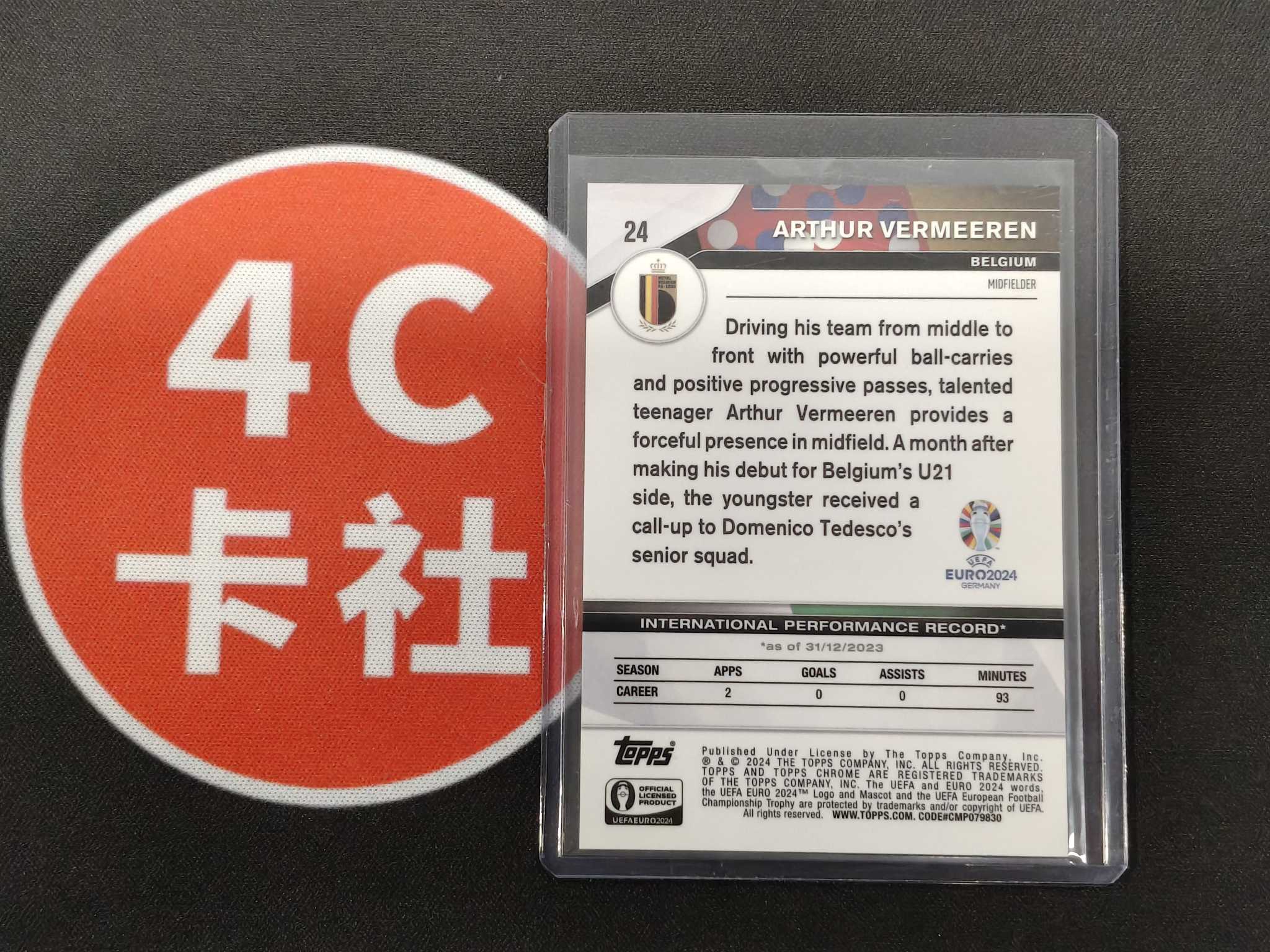 2024 Topps Chrome ARTHUR VERMEEREN RC 【4C卡社】欧洲杯TC 费尔梅伦 比利时 首秀 漫画英雄 变化版 特卡 大比例 箱货 卡品如图