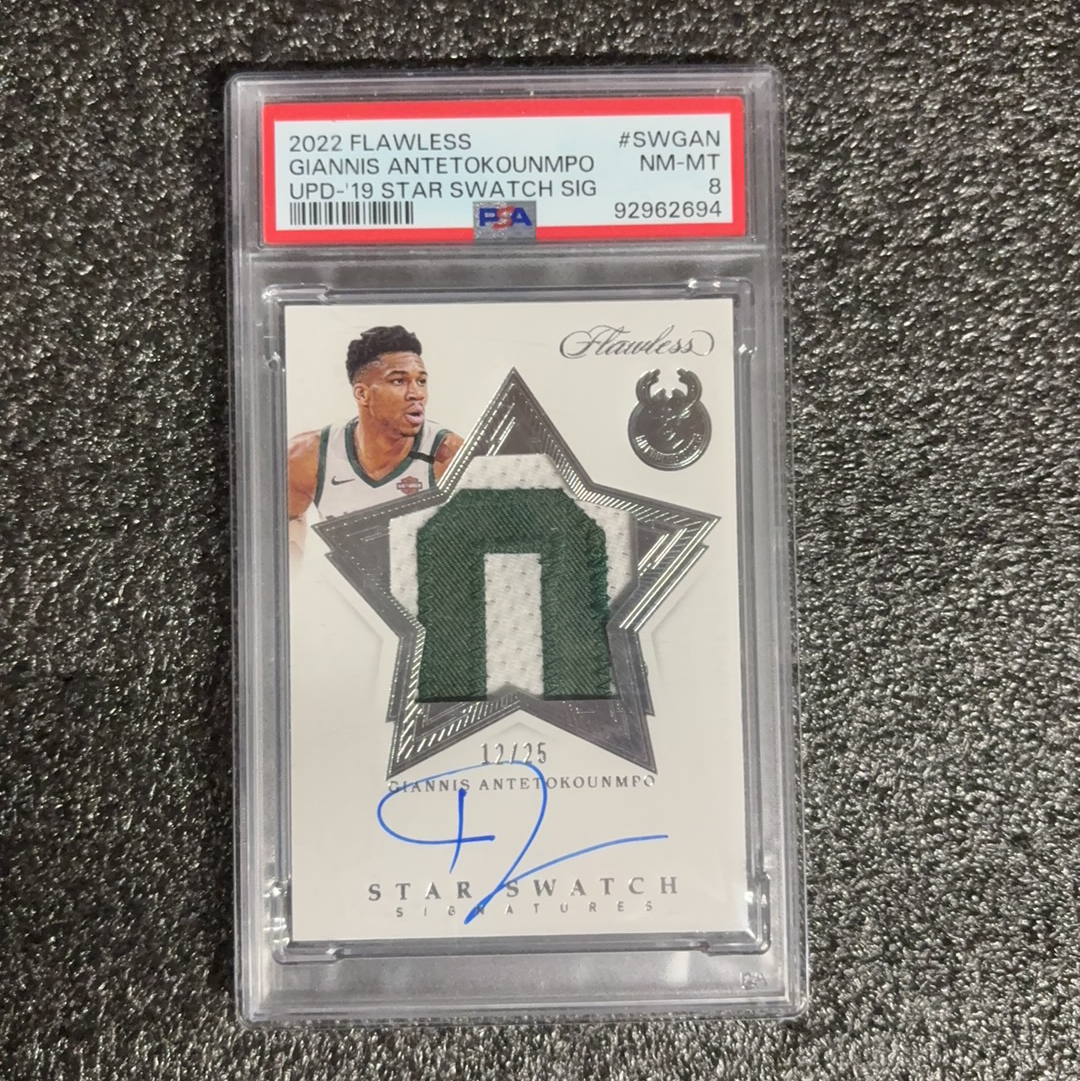2019-20 Panini Flawless Giannis Antetokounmpo 【JZH拍卖】手提 雄鹿 字母哥 阿德托昆博 大窗SS星星 双色 签字 卡签 25编 PSA8分卡品如图汪总