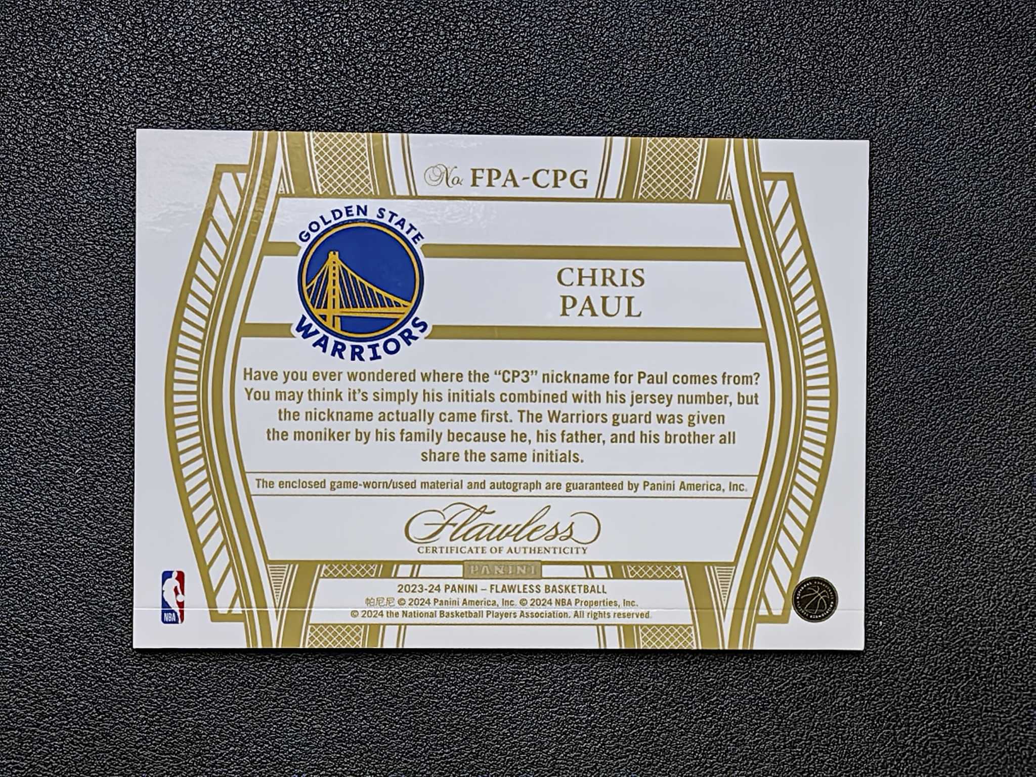 2023-24 Panini Flawless Chris Paul 勇士 克里斯 保罗 15编 手提 FPA 亲穿球衣 队标切割 红平行 签字 卡签