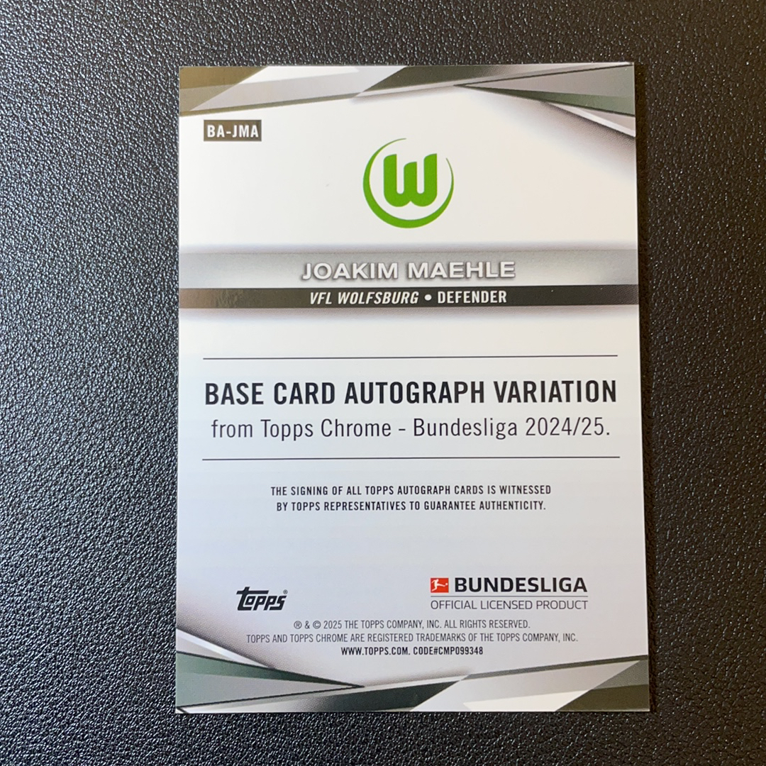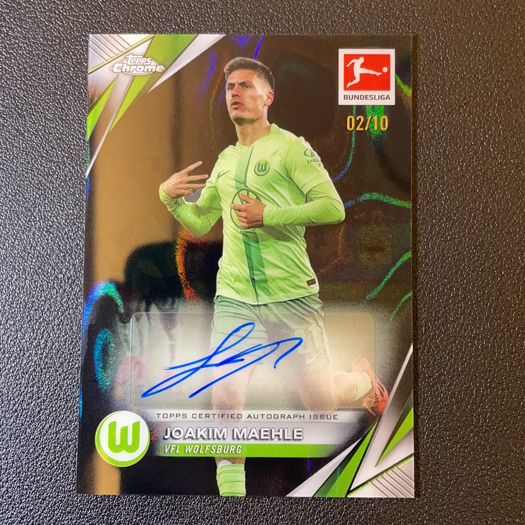 2025 Topps Chrome TC德甲 沃尔夫斯堡 狼堡 Joakim Maehle 约阿基姆梅勒 黑折 黑熔岩折签字 02/10编 超低编 收藏必备 轻印 -SY6476