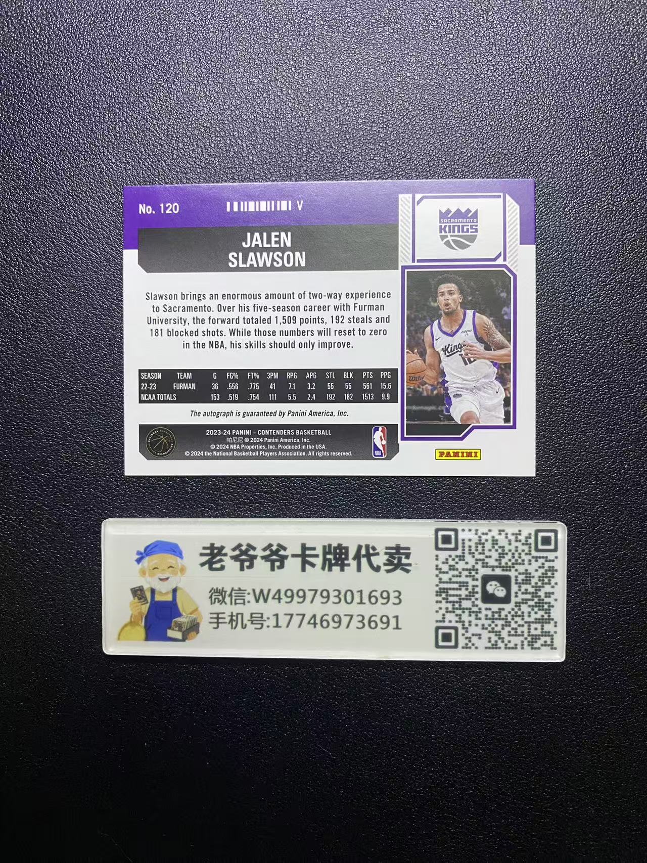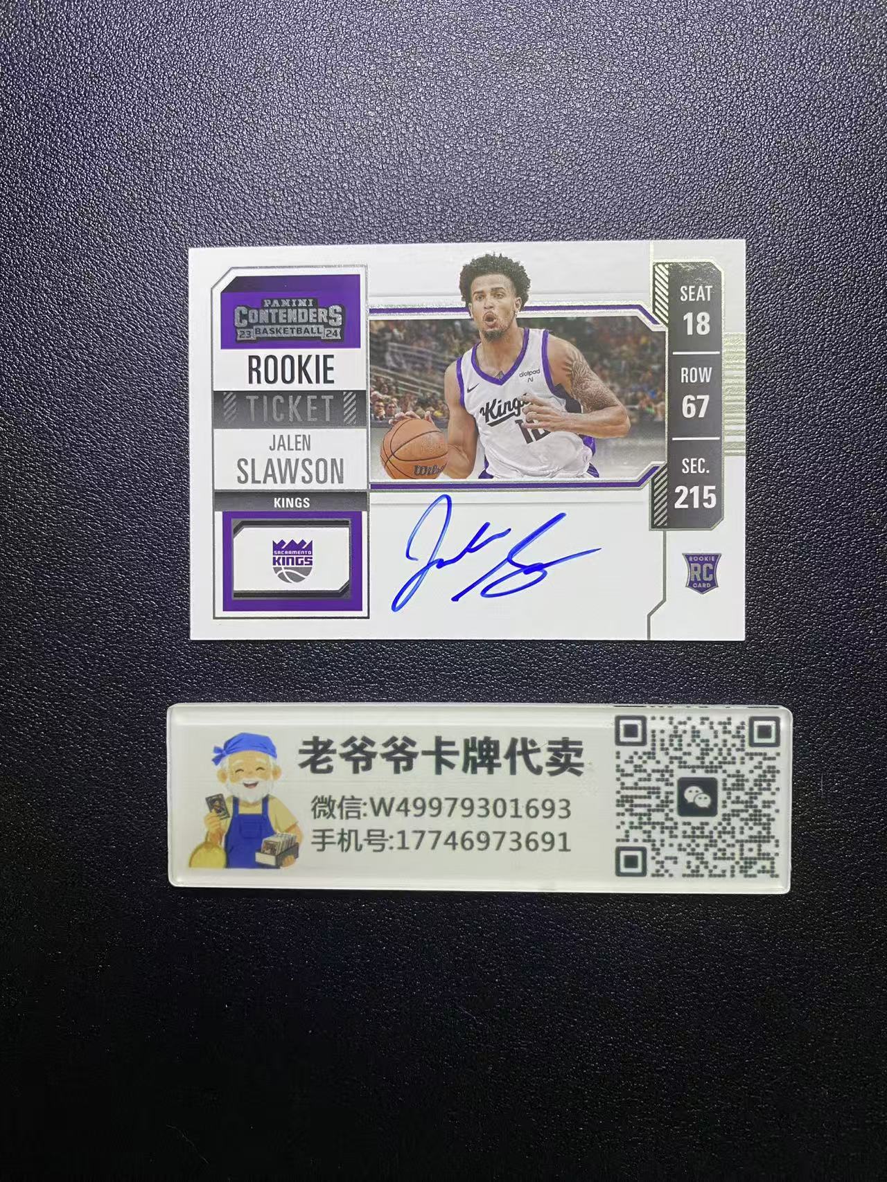 2023-24 Panini Contenders Jalen Slawson 国王 新秀年 杰伦 斯劳森 球票 变化版 横版 签字 卡签 卡品如图 值得收藏 dm