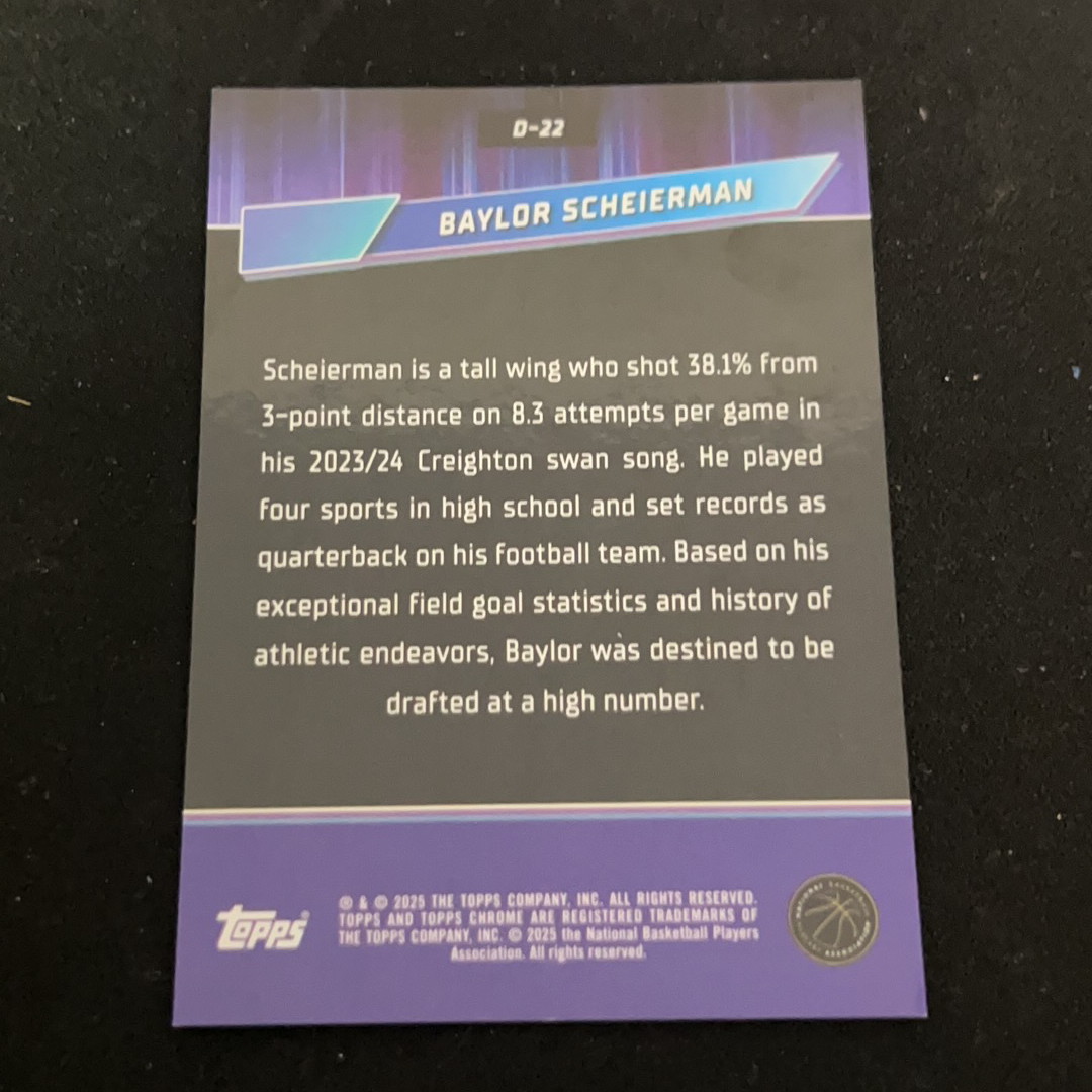 2024-25 Topps Chrome Baylor Scheierman 【小V代拍】贝勒 沙伊尔曼 4/50编 马赛克折 新秀 rc TC 卡品如图【cici】m