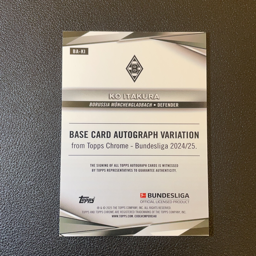 2025 topps chrome 德甲 Ko Itakura 板仓滉 门兴格拉德巴赫 日本 德甲 TC 签字 50编 金折 收藏必备 轻印-SY5332