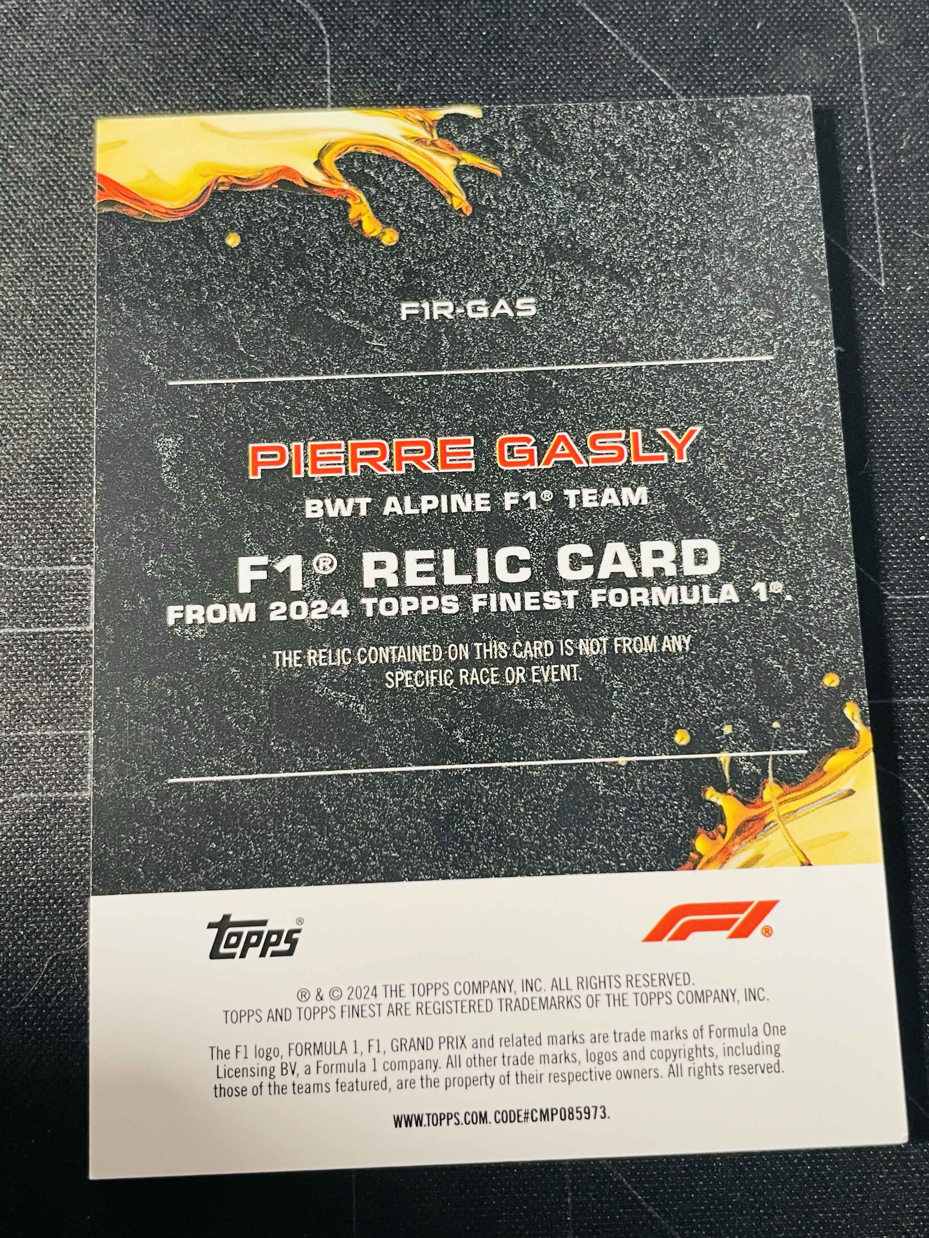【MJ23代拍】2024 Topps 2024 Finest F1方程式赛车 Pierre Gasly 加斯利 Alpine车队 蓝折 75编 实物 比赛服 物料切割 折射 卡品如图