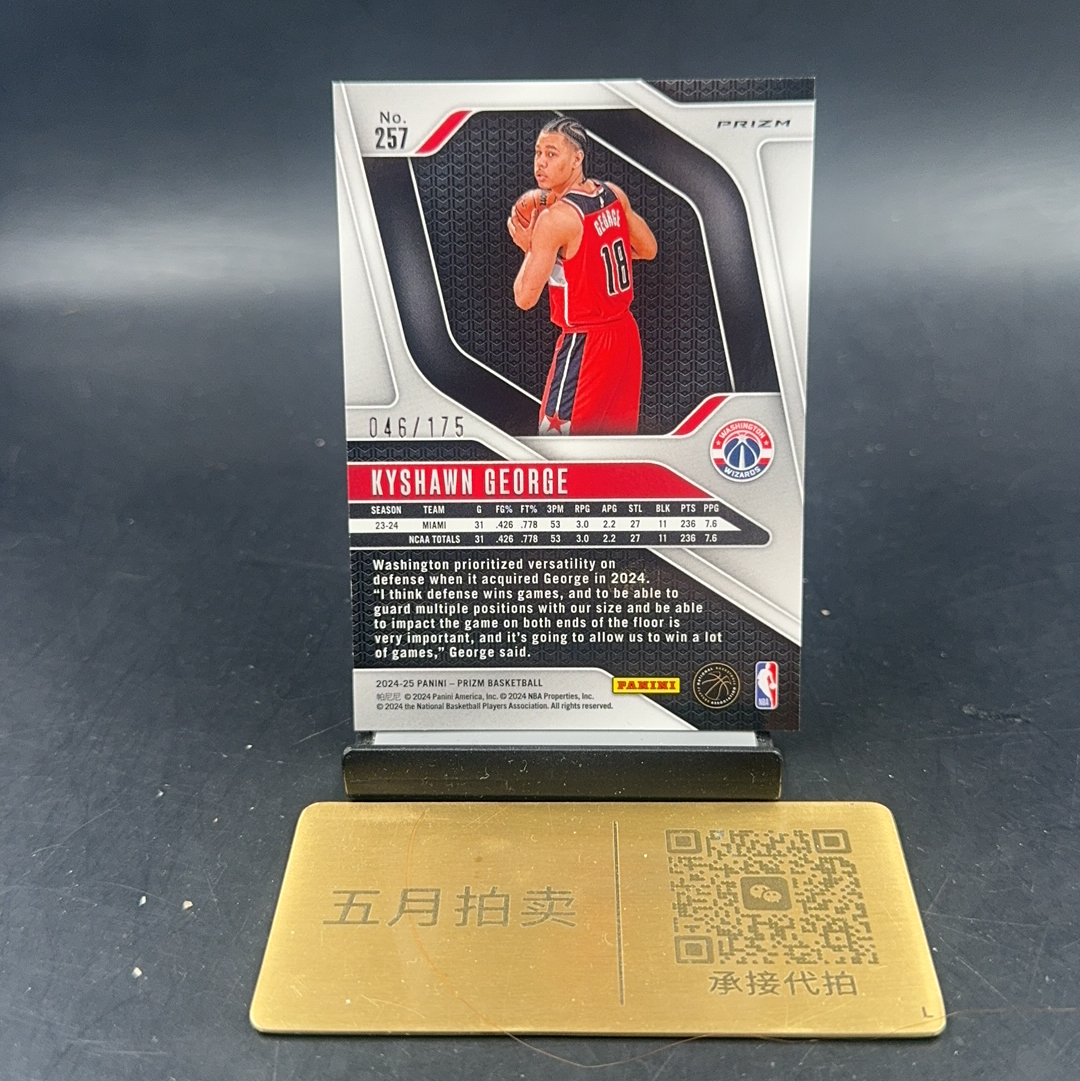 2024 Panini Prizm Kyshawn George RC 【五月拍卖 顺丰空运】pz 凯肖恩 乔治 新秀 白折 175编 卡品如图 xx p71