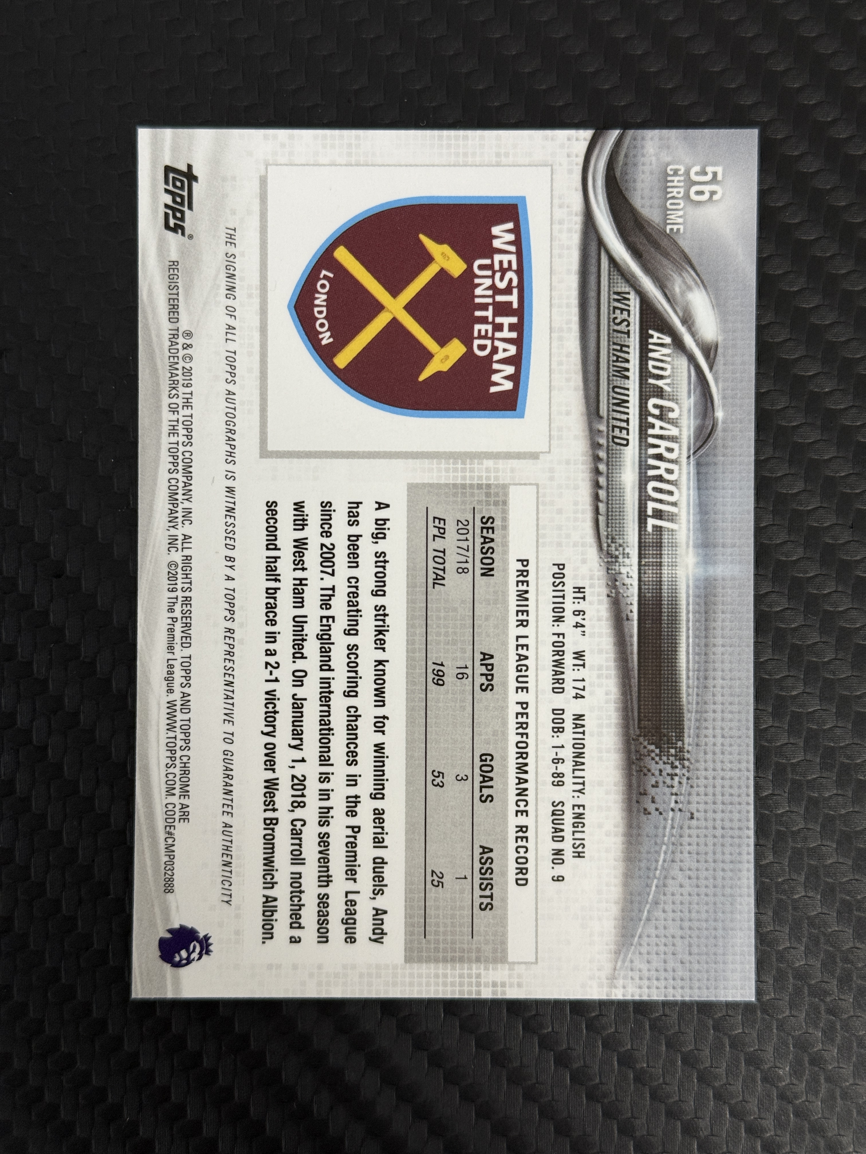 2018-19 Topps Premier Carroll 【包来拍卖】英超tc 元年 西汉姆联 卡罗尔 签字 银折签 折射 卡品如图 小割割