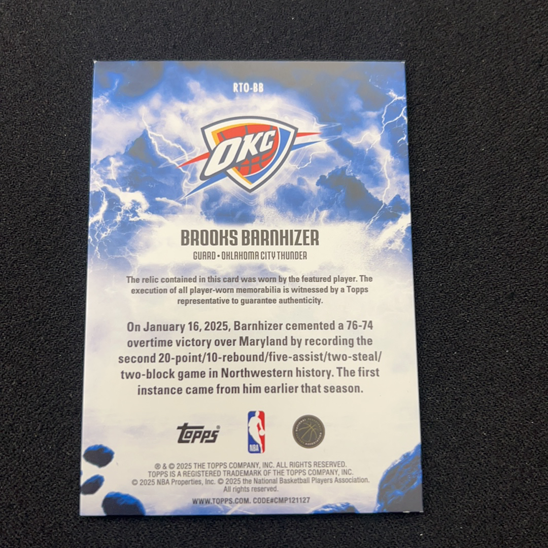 2025-26 Topps Flagship Brooks Barnhizer 【小V代拍】布鲁克斯 巴恩海泽 雷霆 银折 新秀 物料 素窗 卡品如图【Cyber】z