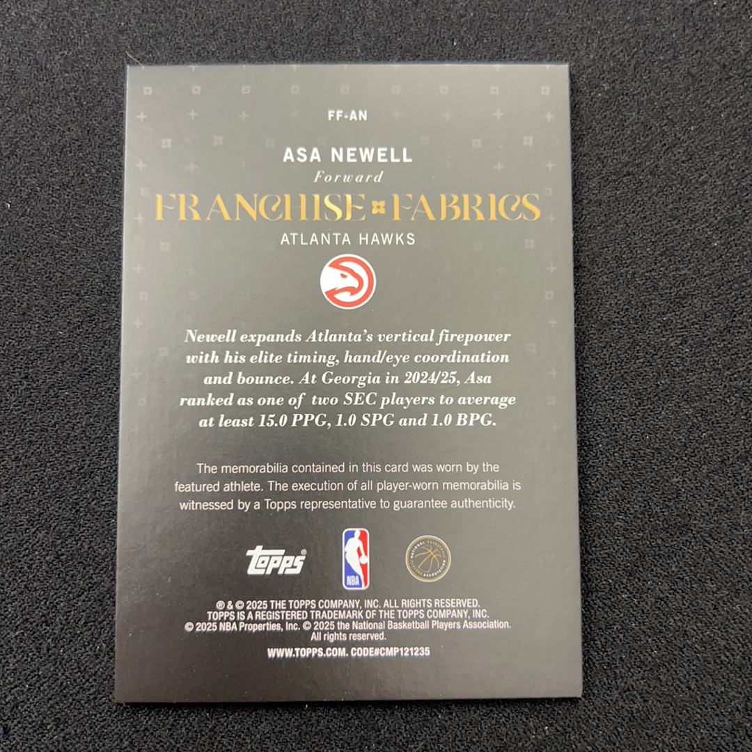 2025-26 Topps Flagship Asa Newell 【小V代拍】阿萨 纽厄尔 老鹰 新秀 物料 素窗 卡品如图【Cyber】z