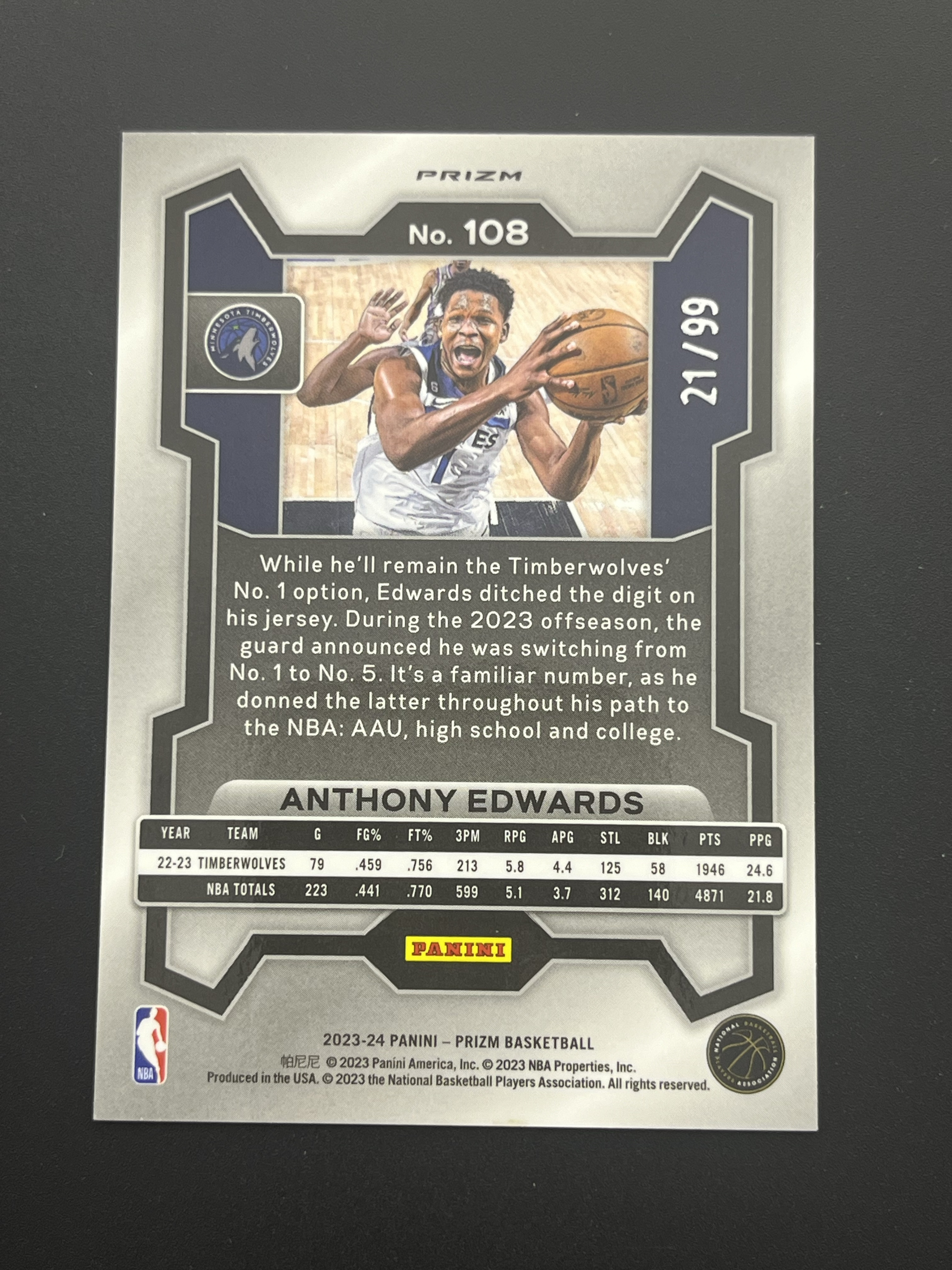 2023-24 Panini Prizm Anthony Edwards pz 爱德华兹 狼王 带编 99编 蓝脉冲 折射 卡品如图