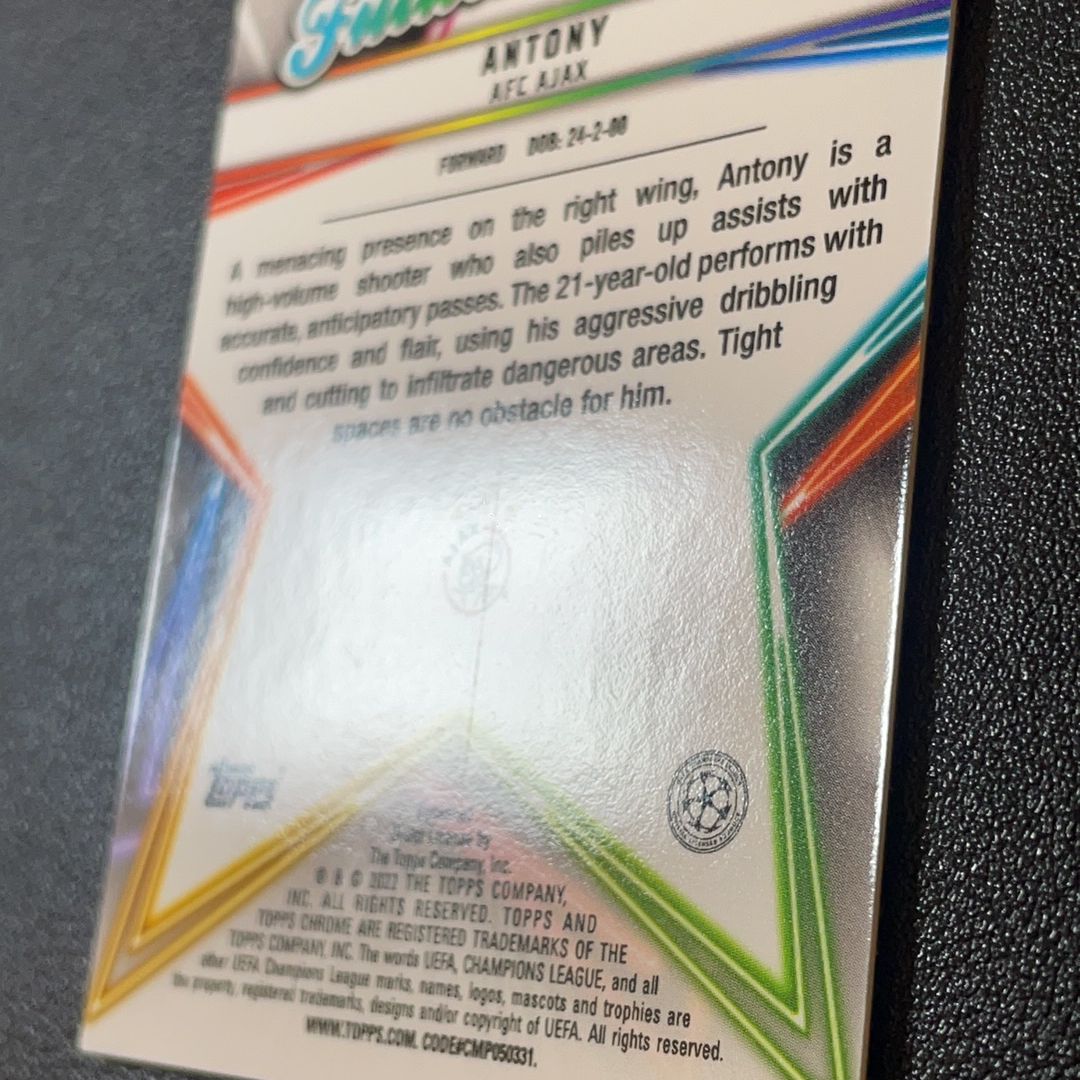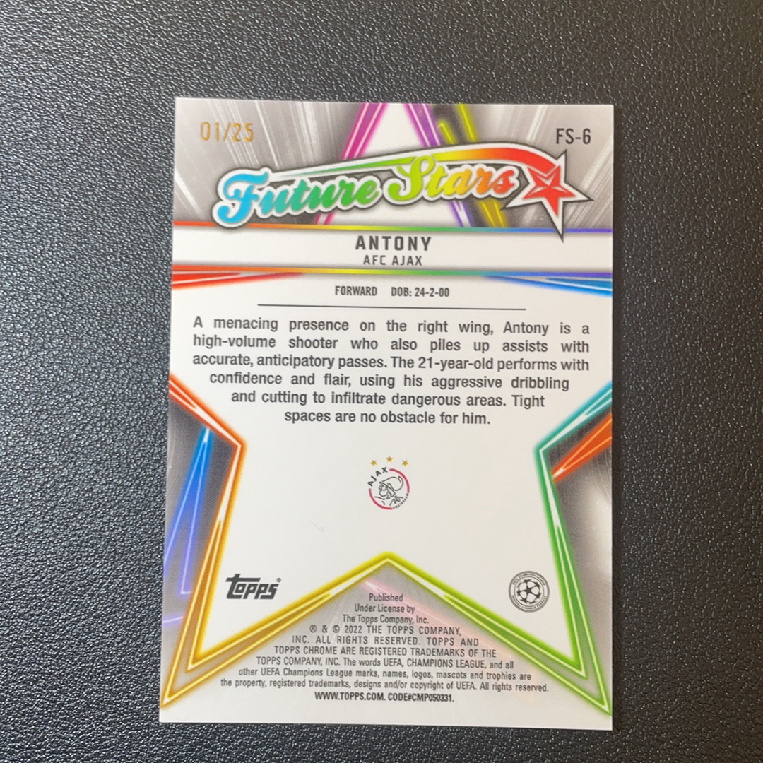 2022 Topps chrome 阿贾克斯 安东尼 01/25编 首编 低编 Future Stars 未来之星特卡 巴西 皇家贝蒂斯 曼联 Antony 紫碎冰折 轻印-S00468