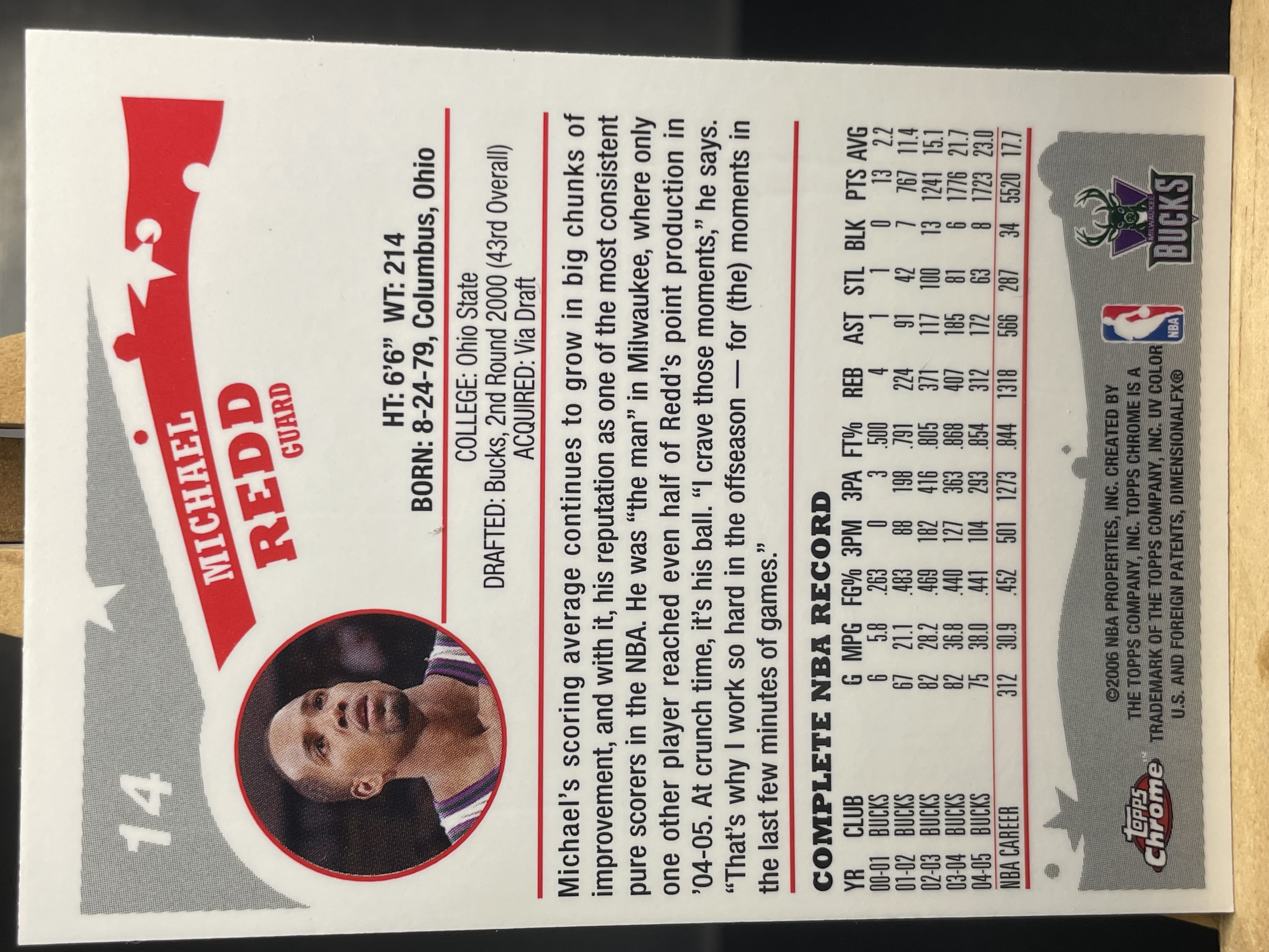 (C3) 2006 TOPPS 老卡 迈克尔 里德 雄鹿 近期大热球星 收藏必备 卡面老化 边角暇 ! ! !