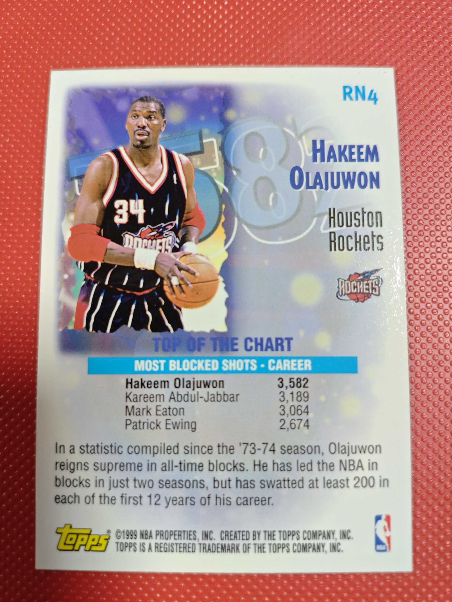 1999 Topps record numbers Hakeem Olajuwon 大梦 哈基姆奥拉朱旺大比例特卡!